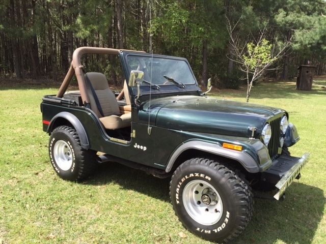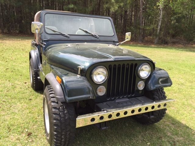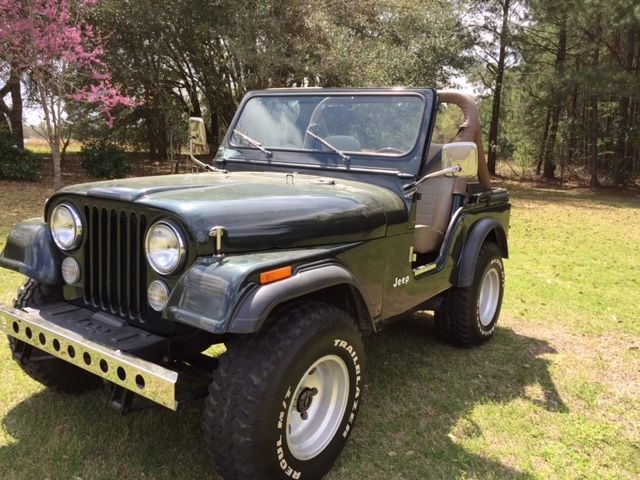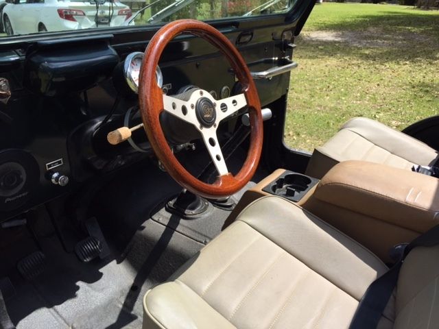 | 1979 CJ5 Manual Transmission 3 speedStereo with 4 speakers and ampRoll Bar Cover with Bikini TopHeaders with side pipesInterior spray linedMisc. Exterior Chrome 32 X 11. 5 TiresAfter market shocks and steering stabilizerGarage Kept |
