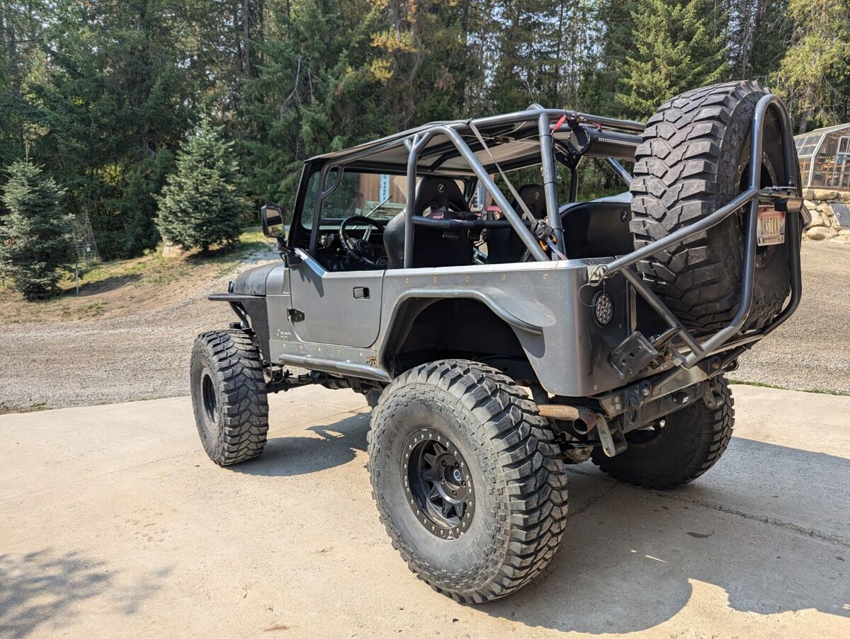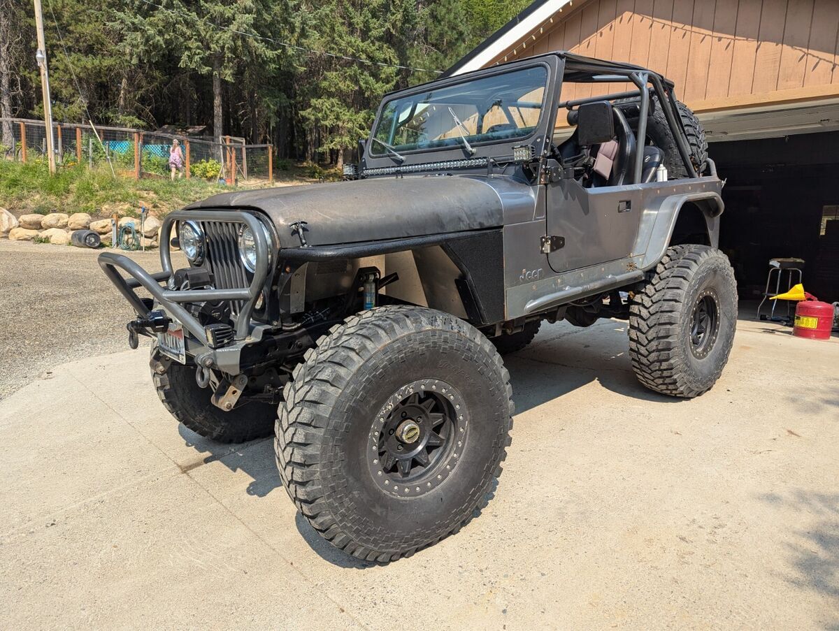 '97 Chevy fuel injected5.7 350 conversion4l60 automatic transmissionEaton e-lockersDana 44 front recently gone throughCurrie Rock jock 60 rearAtlas ll 4.1 transfer case dual stickCustom drive lines done by Eric Post falls, drive linesHydro assist steeringHigh steering kitYj leaves springs with upgraded perchesGenerite front bumper, rear spare tire holder and body armor side panels and cornersFull size spareHigh lift. JackPoison spider full roll cage and rock slidersFull custom skid plate that Protects transfer case with transfer case mounts to prevent twisting10k smittybilt winch with synthetic ropeRidgid industries side shooter pillar lightsRigid industries 30 Sr. Light barRidgid industries. SAE. Fog lightsRidgid industries Chase light with third brake lightLux Rock lightsCorbeau seatsFive-Point seat belts40-In maxis trepaders17-In dirty Life true! BeadlocksEco Bluetooth soundbarFull doors, half doors, hard topSmittybilt front fendersPsc steering box with all new steering components from the firewall down