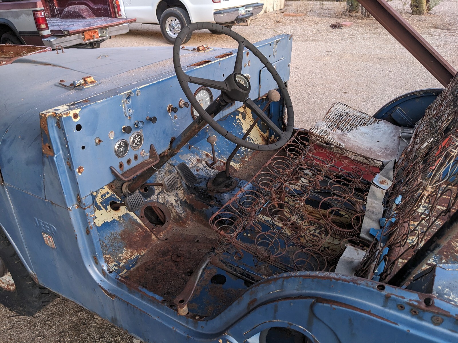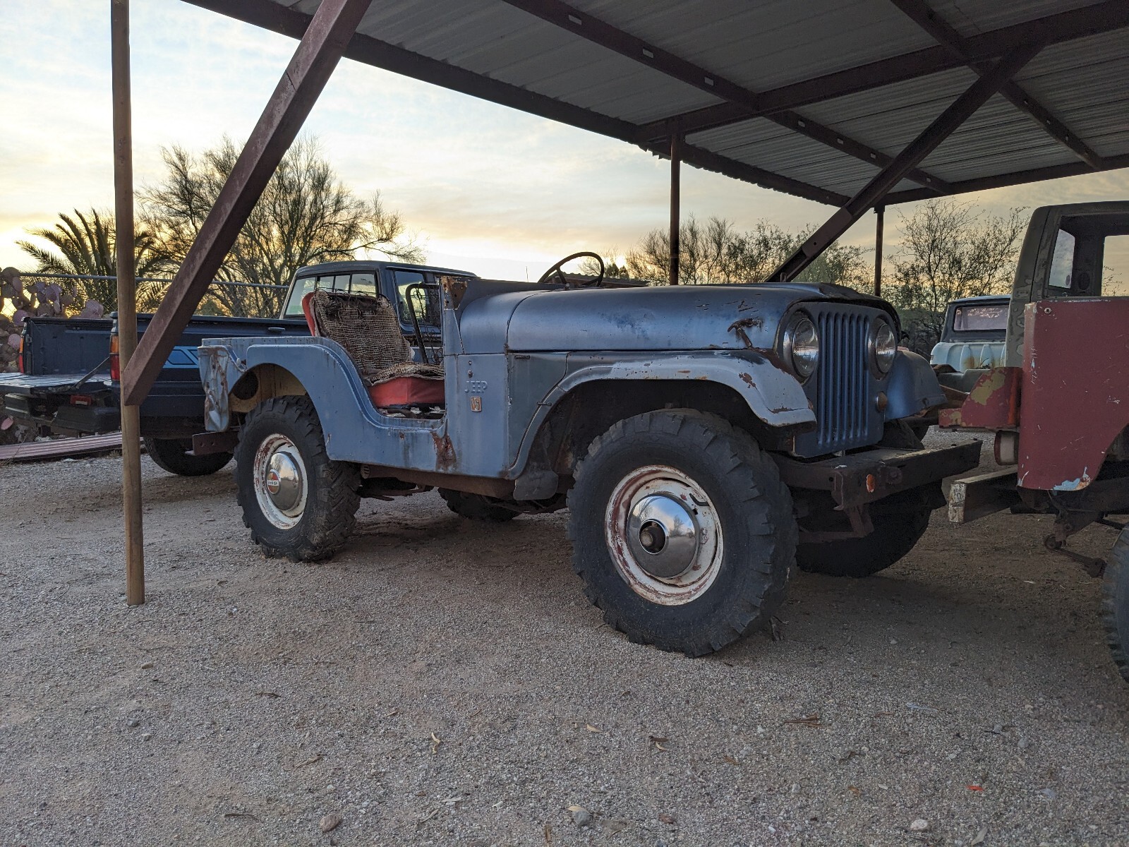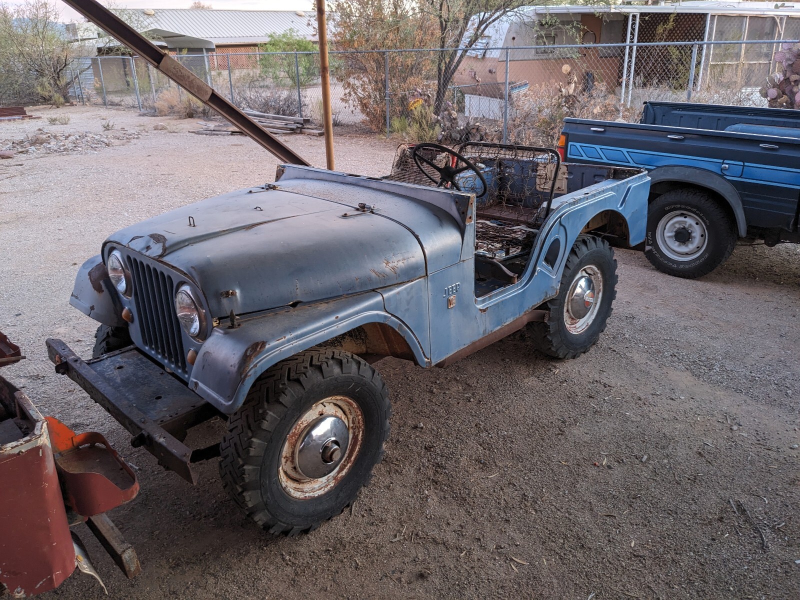 Exterior : 4/10 Original un-modified condition but damaged in a few areas and missing some factory equipped parts. Has rust on passenger side rail near fender as noted in picture. Flat spot and isolated so should be an easy fix.Has damage on the passenger rear corner that appears to be from a tree collision. This one will need more attention as it has a few different types of damage present.In addition to these two areas of damage there is a handful of smaller dents, scratches/scraps present throughout. It is missing the roll bar, windshield, and fuel tank. The wheels on it are the non-original but highly desirable vintage 16x5 sized steel wells with period correct 1967-71 hub caps in good shape. Aside from the damage/rust issues noted, the body is in decent shape. It is not twisted or tweaked, rusty, modified or altered, etc. and it does have most if not all of its little pieces that seem to go missing. Interior : 5/10 Interior is mostly present and in decent shape minus the fuel tank missing and seats needing an upholster or replacement job. They also are missing the hardware necessary to bolt them in. There is a small hole in the drivers floorboard that appears to be derived through an impact or sorts.The floorboards have surface rust but are not warped or beat up. The rear floorboard is a bit wavy and has surface rust but no damages or rust concerns.The dash is in great shape but it missing the radio or whichever piece of equipment that initially went there. The one year only big gauge is in excellent shape (I once was offered $1000 for this part alone).Needs work but definitely a great starting point. Mechanical : 5/10 This is the section that makes this year of Jeep quite desirable and a strong collectors item after a stock restoration. This is the last year before the wheelbase increased to make room for the addition of a V8 engine option.Also the last year of the 160hp/235ftlb. 225ci V6 Dauntless engine which many say is the perfect fit in size and power for the vehicle. This was a 4.5 year run for this engine option.It has the flanged Dana 44 rear axle instead of the tapered design, this was a 1970.5 and up change. I am missing the carburetor and one of the dist. wires has been chewed. All other mechanical parts are present that I know of but will need TLC as this Jeep has been sitting a while. The chassis and drivetrain all look to be in great shape with no rust issues, damage, or signs of any major fluid leaks. Though the clutch pedal does not depress and the dual long tube headers with side outlets I am going to guess is not original. Conclusion : I have a clean title for a relatively clean Jeep. There are many cheap Jeeps out there and I understand the price point this one is listed at may not be suitable for all. However, it has a lot of positives going for it condition wise and being the last year of the short CJ-5s with the mechanical options it has for the year make this a strong buy for someone interested in those qualities, especially if a collectors item/stock restoration is desired. It is difficult finding an original un-modified vintage Jeep. Vehicle is located in southern Arizona and I can help with your arrangement of shipping. Please do not ask how much shipping will be, that is a question only you can find out, I can just help with information and loading and what not. I can hold the Jeep for 30 days after payment is received. I require 50% of the purchase price within 7 days, and 100% within 14 days of deal close if transacting online. If cash in person, we can figure it out. The online eBay deposit is $250 and due within 24 hours of deal close. Zelle, Bank to Bank wire transfer, check at the bank, and cash are the only accepted payment options. Feel free to send any questions my way or if you would like to chat on the phone, we can do that as well. Thank you for visiting my listing. I have a bunch of random Jeep parts I have collected over the years if you are interested in anything, just let me know.