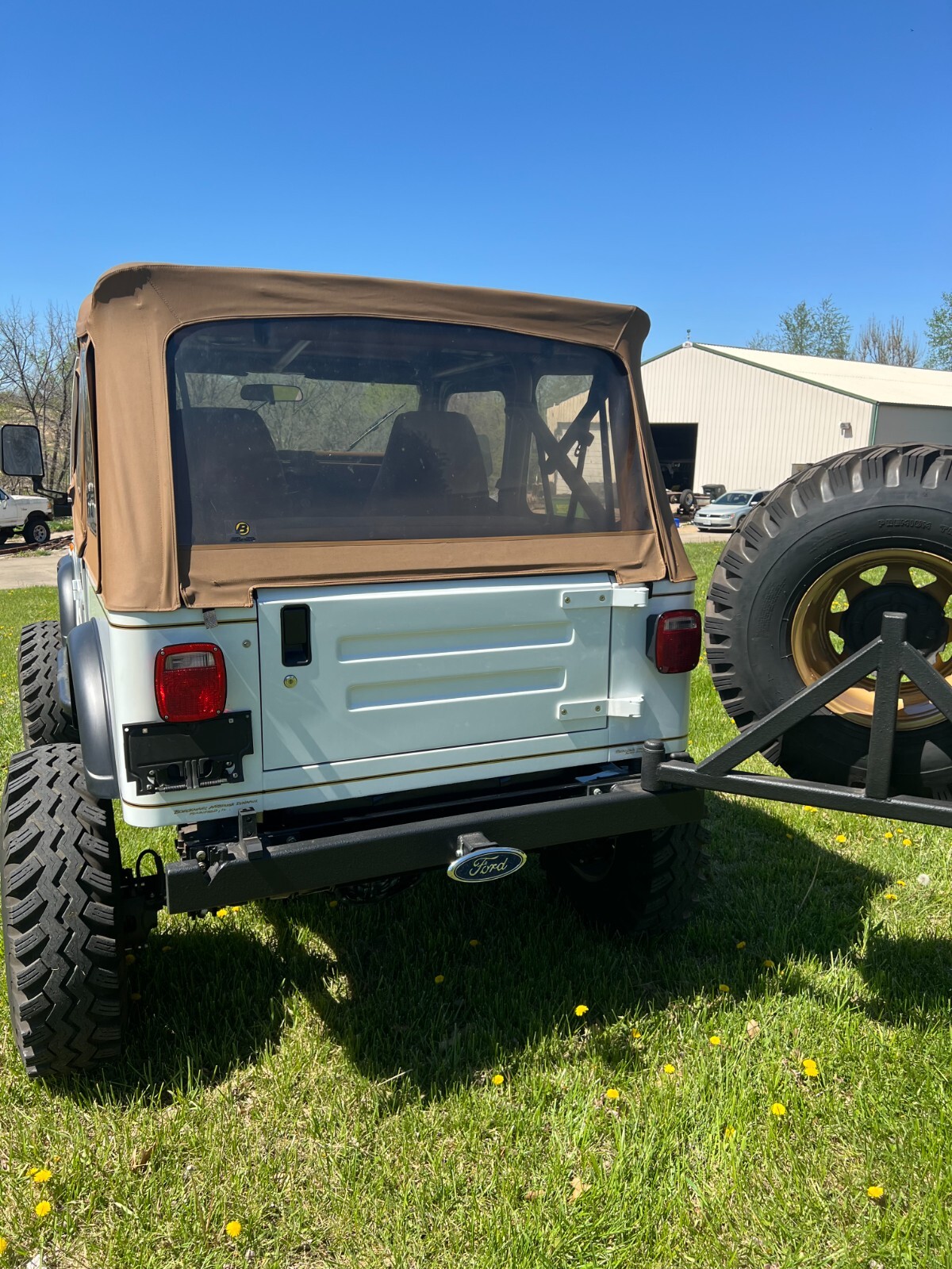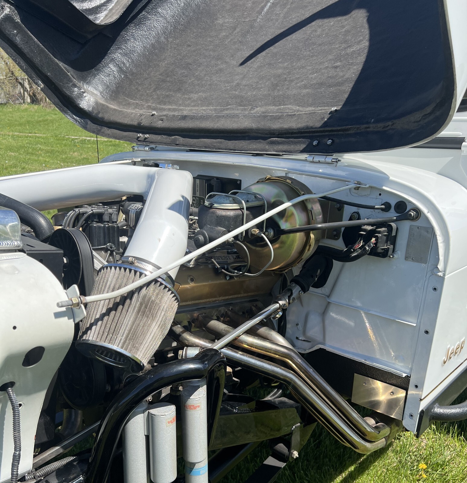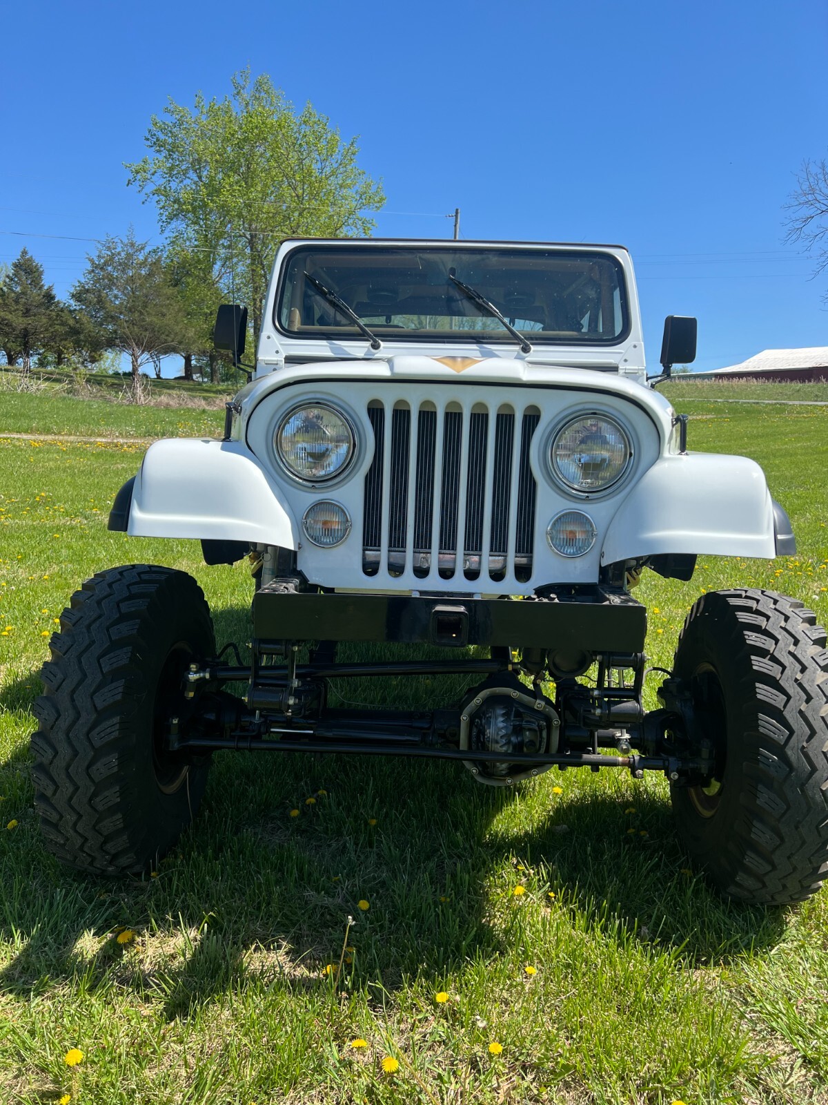 128 miles since completed full build frame up with over 6000 hours of time spent Rust free frame and body to start with. Frame has had all holes welded and smoothed out Blueprinted and balanced 408w all roller, aluminum strikeforce heads, custom cam, 10.5 compression, eagle rotating assembly, mahle pistons, Fast 2.0 fuel injection with Fast distributor (includes hand held programmer) This setup alone was 14K. Will run on E85 with tune. MSD digital 6 ignition with MSD coil Handmade cold air intake. OEM ford serpentine belt system with factory smog and AC delete Powermaster alternator Fenderwell headers and side exhaust. 1979 Ford Dana 60 front axle completely rebuilt with spartan locker 1997 Sterling 10.25 rear axle completely rebuilt with lockrite locker and disc brakes All rotors, calipers, and pads are Raybestos New fuel and brake lines. C6 transmission with stall NP205 transfer case 1410 driveshafts Custom golden eagle paint, no stickers, all airbrush Fiberglass front clip with oem CJ grill Besttop supertop All new lights and rubber New windshield in a rust free oem frame. Tilt oem column All factory sheet metal including doors Autometer gauges Monsterlined underneath the body and inside Rio grande seats 7 speaker stereo 9.00x16 powerking tires on 16x8 steel wheels, could easily run 40's Old Man emu springs with Bilstein shocks, rides great Cold case radiator with dual electric fans Does not have a horn but one could be added easily. Full build thread on wranglerforum with over 400K views