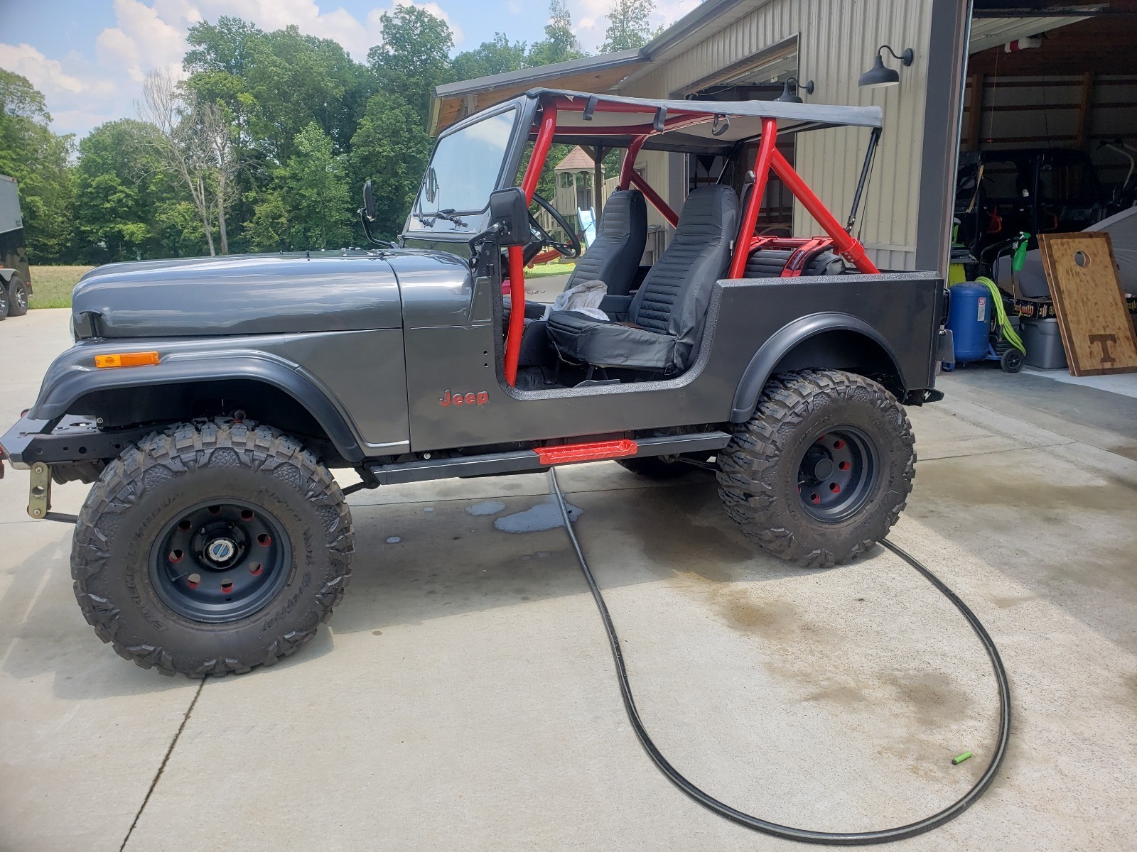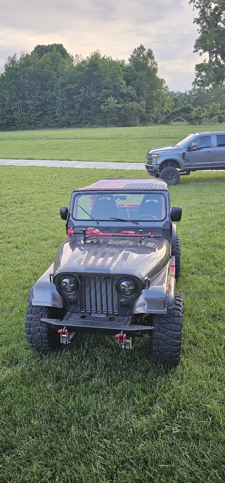 1978 CJ7 Jeep 19000 original miles Vehicle Details Custom rebuild Original 258 AMC straight 6 with T150 3 speed transmission on original frame. Even have the original hard top that had a yellow becon light on it. I have american flag bimini, full length bikini that covers back seat as well. New: Tub, hood, tailgate, guages, paint, head lights, tail lights, gas tank, sending units, seats, power brakes, power steering, lift with steering stabilizer, bumpers, all hardware, roll cage kit, brakes, brake lines, seat belts, 4 point harness in rear. Im sure I'm leaving stuff, I'd just start adding stuff and stop for a while and start again when I had time to mess with it. Jeep has been painted gun metal grey, rhino lined inside and underneath tub, I have the original doors and all the pieces to put them back together. They are already painted as well. New glass goes with them too. Perco switch for cutoff. Jeep was purchased new by airport for snow plow. Airport put an hours meter on the engine. I have all the records including window sticker, sales receipt, maintenance records since the day or purchase. I have every original part that was swapped out with new parts (minus original tub). Every hour matches with mileage. This is an over documented jeep! I have 2 kids, wife, and dog! Jeep never gets driven since the mileage on it. Need a four door for my family. Will consider trade for 4 door Jeep. Price is firm....please dont comment if you aren't going to buy or are serious.....scroll on to something else if this isn't for you. I dont have time to play games. Ive had this Jeep for over 16 yrs and it doesn't bother me to let it sit. |
