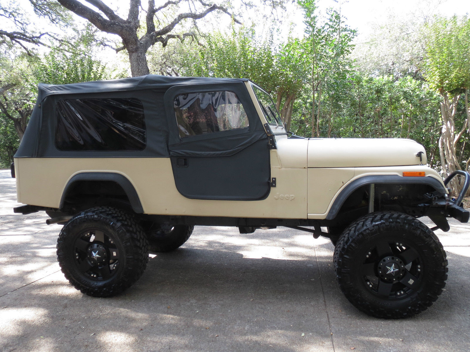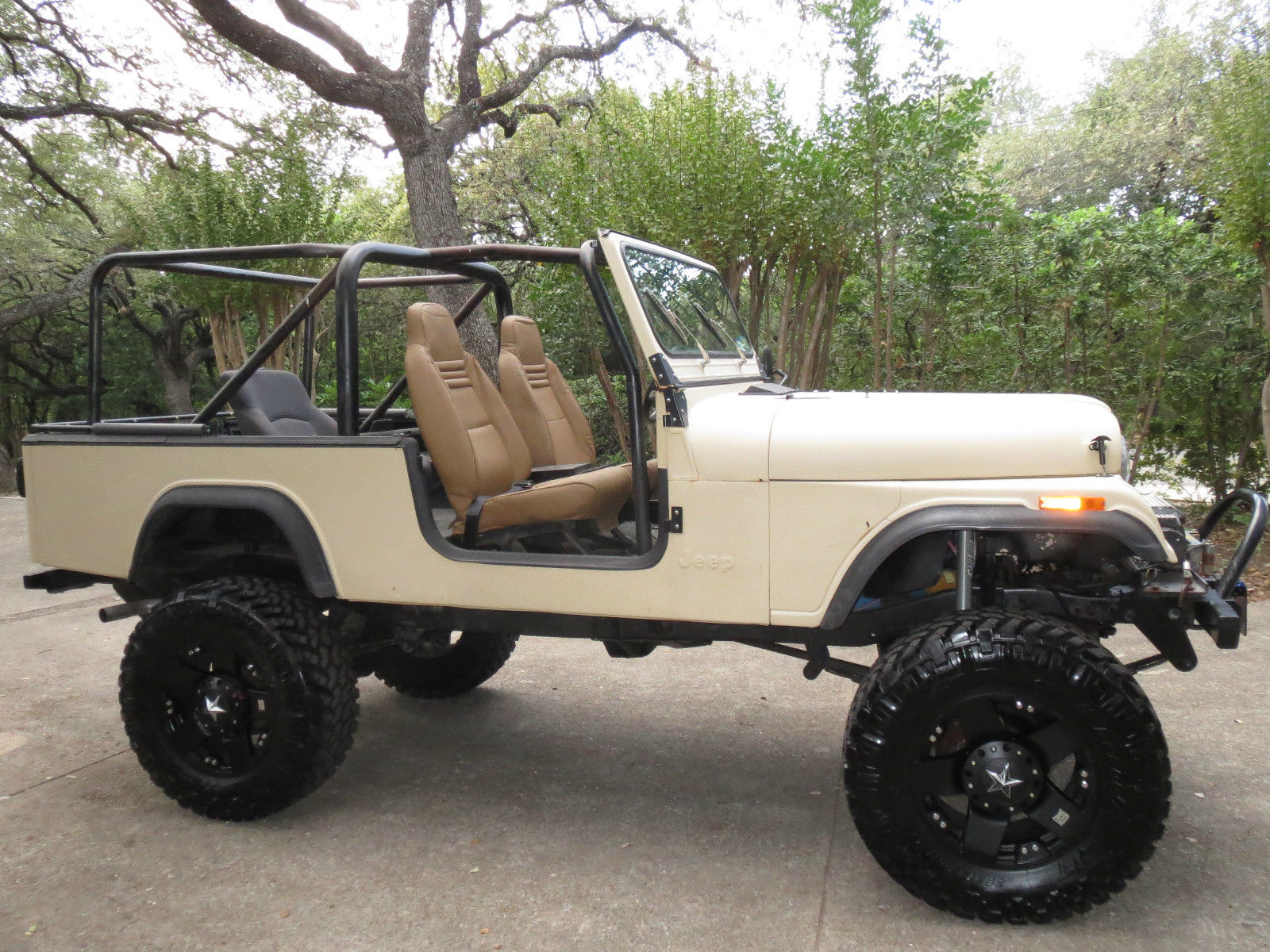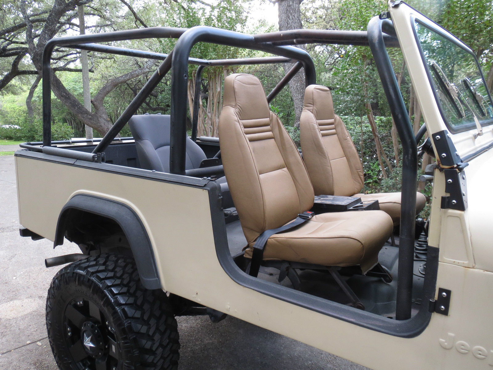 | Check out this custom '84 Jeep CJ8 Scrambler. This is your opportunity to capitalize on a limited opportunity. I am in the processing of moving to a large city and although this jeep does great cruising down the highway. it would be a waste to be stuck at numerous traffic lights day in and out. I can relocate it to a relatives house but prefer to sell it vice let it sit. Under the hood you’ll find an AMC 360 with Crane cams and lifters. Edelbrock performer manifold. Holley Avenger carb. and Edelbrock short tube headers. The odometer mileage is based on the AMC 360 install. This CJ has a 5-speed transmission with a Centerforce dual friction clutch. B&M shifter. and a Dana 300 transfer case with a twin stick. In the rear you’ll find a Dynatrac Dana 60 with a Detroit locker and disc brakes. Up front there is a Pro Rock 60. ARB Air Locker. and disc brakes. This CJ8 has a Rubicon Express lift. The interior of this solid tub is rhino lined. Recent additions:1. Painless Wiring Harness: $8502. Dana 60 Emergency Brake: $1903. Best Top (Soft) w. Doors: $1. 004. 35x12. 5 Nitto Trail Grappler M/T Tires: $1. 805. XD Rock Star Rims: $7156. Bikini Top: $1007. Half Doors (Soft): $175New Parts total: $4. 10 Also Included: 8. (4) Super Swamper TSL/SX 38. 50 x 14. 50 tires (They all have good tread (reference photo) and are in great shape). 9. (5) Alcoa rims (The rims are in good shape as well). 10. (1) 35 x 15. 50 (spare tire with limited tread). Approximate Value: $2. 00Summit Racing Internet Description of the TSL Tires: These Super Swamper TSL/SX tires were designed for extremely tough off-road conditions where sidewall strength and protection are needed to withstand severe scuffing from running in ruts and snagging roots and rocks. These tires have a strong nylon or polyester bias-ply body with dual belts under the tread and wraparound lugs. The sidewall lugs not only protect the sidewall. but also provide extra traction when climbing out of ruts. Note: There are no 5-point sealt belts(blue ones in the photo). only normal lap belts. If you know about jeeps you know this is your chance to capitalize on a nice rig at a great bargain. don't let it pass you by!! Good Luck Bidding!! |