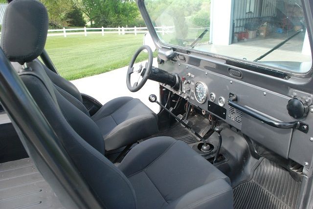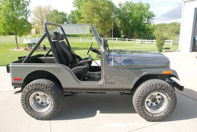 You are bidding on a 1979 Jeep CJ5 that has had minor rust repaired on body and had been painted inside and out. Motor and transmission work as they should and the vehicle has plenty of power from the 302 V-8 which came out of a Mustang. It has a 3-speed manual transmission that shifts as it should (clutch is solid) brakes also work as they should. Truck has two new bucket seats in the front with no rear seat. See Pic 9 as there is a bad spot on the windshield. Motor - 302 V-8 from a Mustang Trans - 3-speed manual Tires - Mickey Thompson 31 X 15.50-15 LT 97S (good tread some weather checking/cracks on the sidewalls). Please feel free to call with additional questions Jim (816) 985-6656 |