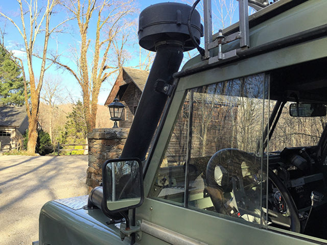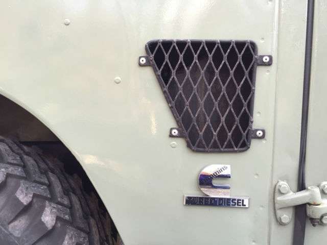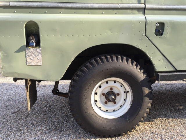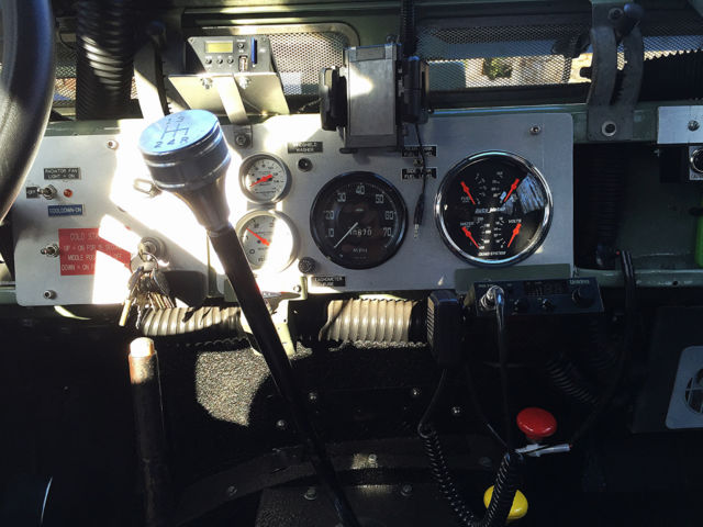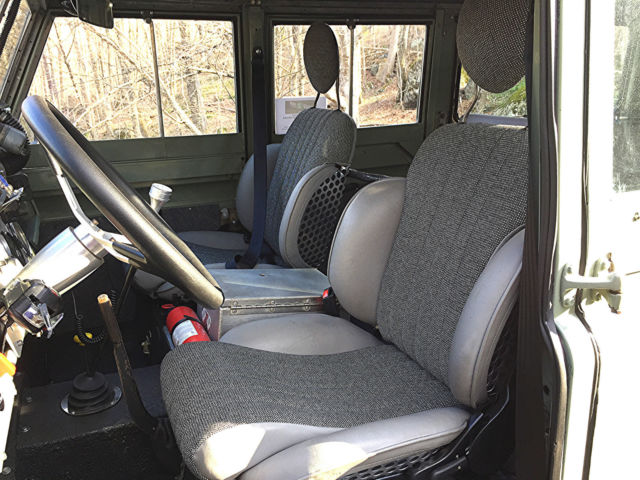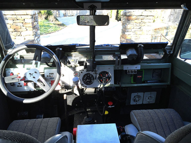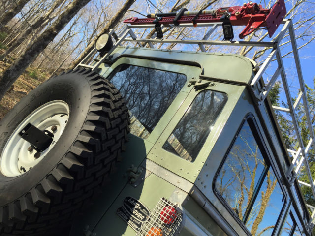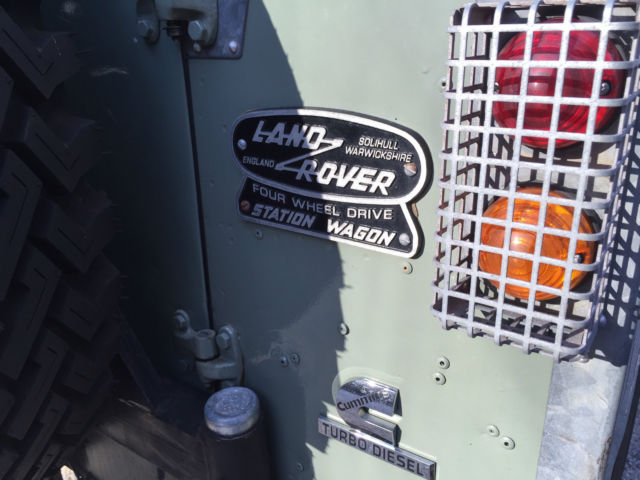 If you are looking for the ultimate wagon for your beach or country home look no further. This LR started out as a working vehicle from a coffee plantation in Cost Rica. It was originally powered by the Land Rover Diesel with the standard Land Rover transmission. At some point it was imported to California. The Land Rover was purchased by a Boulder, olorado enthusiast who spent several years planning and building this magnificent and extremely capable machine. We believe "Irene" (named after the notorious hurricane) has traveled less than 4,500 miles since the build. In this photo, ote the custom galvanized front bumper with a WARN 8,000lb winch with a roller fairlead. Rocky Mountain light guards on the wing mounted lights. 5-bar checker plate on the wings, pring loaded hood hold downs. The snorkel has a pre-cleaner (spinner type) head. The build included a Cummins 4bt Diesel out of a late 90's delivery truck, ebuilt most of it and installed many new parts in order to have a 100% reliable engine. This engine is what you will find in some Dodge Diesel Pick-ups, edEx and UPS trucks. This is a great addition to the Rover as it provides lots of power and torque at very low RPM's. It has a Holset rebuilt turbo, ebuilt injector pump and injectors. The water pump, hermostat, tarter, lternator, eals, elt tensioner were replaced. The engine is mated to a standard Ford bell housing with a standard Ford 11" clutch. There is an external hydraulic clutch slave cylinder. The clutch, lave cylinder and throw out bearing are new. it was treated to new polyurethane motor mounts. The transmission is a rebuilt Borg-Warner T-19 fully synchronized 4 speed. It is a close ratio (made for Diesels). These are bullet proof transmissions and are found in Ford and other brand 1-ton pickup trucks and large dump trucks. The transmission fluid is Lucas synthetic. The engine fits very nicely into the room available. There is a 3-core aluminum radiator with a thermostat controlled 3300cfm fan. K & N air filter and a aluminum turbo intercooler. There is an air intake shut down valve (in case of a runaway engine). The engine also has a 110v block heater as well as a 12v intake air grid heater. Dual batteries with Cole Hersee isolator to keep winch battery and starter battery separate. The winch has fuse protection under the driver's seat. Louvered vents on hood provide extra cooling on hot days. The T-19 transmission rebuild was commissioned through Advance Adaptors and is mated to an Ashcroft UK High Ratio transfer case using Advance Adaptors specified output shaft and adaptors. This combination gives you lower rpm's at highway speeds and keeps the original low range unchanged. A Rocky Mountain cooling fin transfer case cover was installed. The entire transfer case was rebuilt with Land Rover parts to include seals and shims. A new speedometer gear was installed with a new speedometer cable. The standard transfer case drum brake was removed and an X-brake, K was installed. Fluid in the transfer case is Lucas synthetic. Dedicated start battery had to be relocated with a Coleman Products battery mount and an Optima Yellow top due to the increased length of the driveline from the Advance Adaptors configuration, s well as the transmission/transfer case mount. That crossmember is now of the removable style. The interior (front) has a custom aluminum dash with Auto Meter gauges. There is a hand throttle and 3-speed heater/defroster as well. The steering wheel is a Grant 16" three spoke wheel with a custom steering column mated to a rebuilt Saginaw Power Steering box. The adjustable custom bucket seats are quickly removable with captive pins for easy access and there is a lockable aluminum cubby box between the seats. Instruments include: LR original speedometer (restored), ach, ater Temp, il Press, mps, uel level (for both tanks), anual Electronic fan control (you can shut it off for water crossings and leave it on reduced speed for cool downs when engine is off), ear work light switch, ff road light switch, urn signals, ead lights, orn button, indshield washer button.Land Rover A 40 channel CB radio attaches under the dash and there is a FM / Ipod / SD Card radio player on the overhead. Both original wiper motors have been rebuilt with a new windshield wiper reservoir and pump. Bulkhead vents have new seals with the original Land Rover screens (keeps bugs from flying in when vents are open on the highway). The bulkhead was media blasted and painted with POR-15 before top coating and is 100% rust free. Interior floorboard, oot well and transmission tunnel area has had bed liner material sprayed on for anti-slip properties. The original fold-down LR back seat has been reupholstered. It has three lap seat belts for three passengers and again the floorboard area has had bed liner material applied for anti-slip properties. Original LR grab bar can be seen behind the front bucket seats. Rear cargo area has also had the bed liner material sprayed on and covered with a removal outdoor carpet mat. Shovel and ax mounted against the driver's side fender. Locking tool storage area has a jack, ug wrench and other tools.The original LR Series style sliding rear windows have been removed and the newer Defender rear sliding windows installed. Locking aluminum cubby box and a 15 gallon main tank under floor. The rear door has a third (middle of the door) hinge installed and a custom swing away rear tire carrier welded onto the rear bumper. This totally eliminates any door issues from the weight of the tire typically mounted to the door. A full-length roof rack with ladder is mounted to the roof rack and the roof is a Safari style with vents. A Hella rear work light provides rear illumination and a High-Lift jack is mounted onto the roof rack. Irene has original Land Rover mud flaps and there is a Class V pintle tow hitch. Rocky Mountain rear light guards, norkel, re-cleaner, oof rack, ella lights add to its capability in all adverse road and w