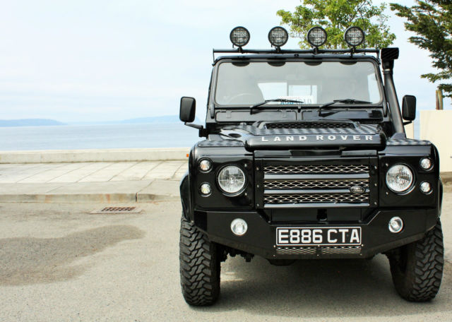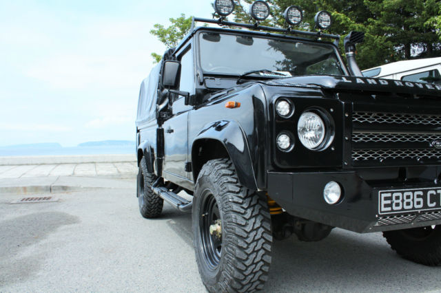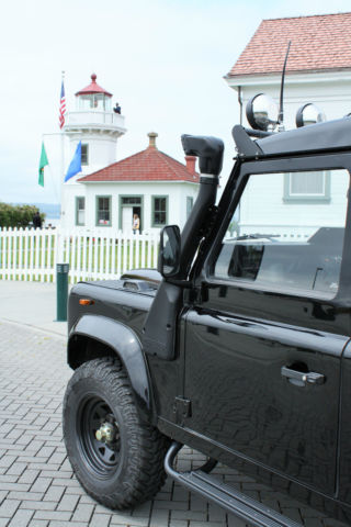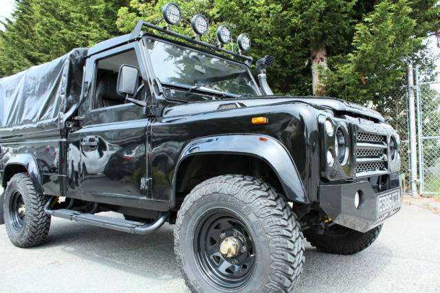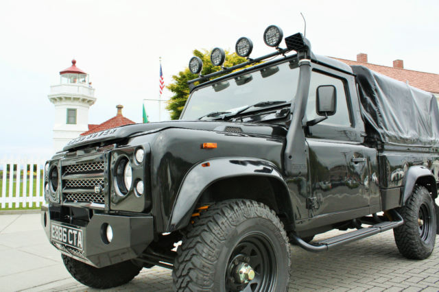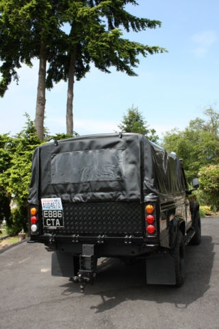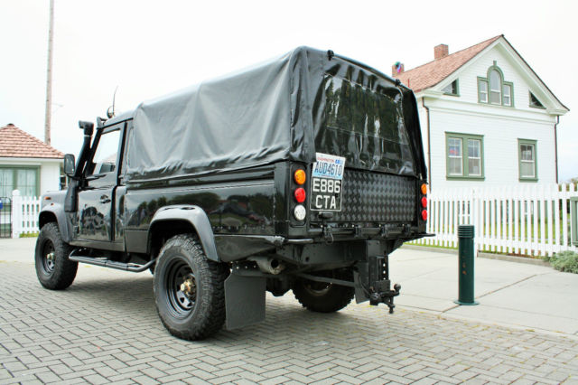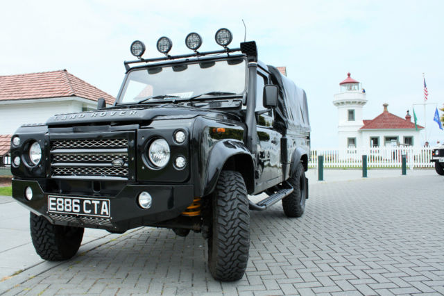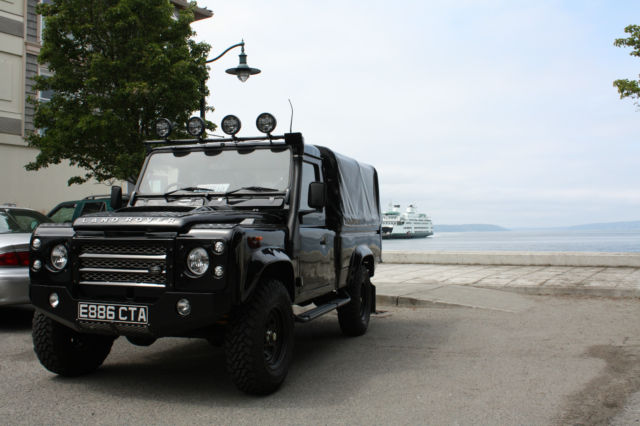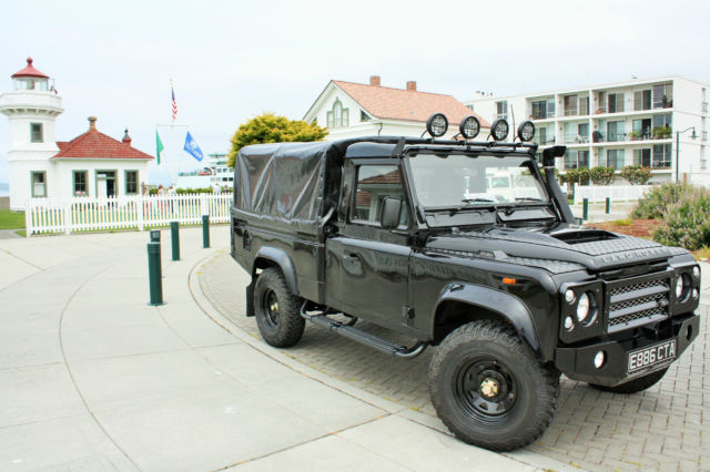 Presents: "the BLACK PUMA" LAND ROVER DEFENDER 110 PICK UP SOFT TOP Vehicle is titled and licensed in the State of Washington and has complete importation documents from the Department of Homeland Security, PA and DOT. This is a 100% legal US Vehicle. So you can buy with confidence. For more pictures and to watch the video:The Black Puma First registered: June 21th1988. 2.5 Turbo Diesel fully reconditioned engine. Land Rover Puma black. 122,000 miles VIN:SALLDHHB7EA335160 eBay does not recognize European VIN numbers. This is the actual VIN of the vehicle as issued by the Government of the UK. See description of VIN below: SAL Manufacturer code: Land Rover BODY The body has been stripped and repainted in LR Puma black. The nose has been modernized with a heavy duty bumper, uma grill and headlight finishers and a Puma bonnet. A new Safari snorkel, ight bar with 4 spots and side step bars have been mounted. All parts that needed to be changed are replaced by new ones, rom screws to rubbers. INTERIOR The interior has been upgraded with new Exmoor Trim Diamond Style XS leather seats, ubber and carpet matting. The load space has been upgraded with custom made brand new galvanized wheel arches, einforced wood ply and aluminum strips. ENGINE The complete engine is reconditioned. All parts that are subject to wear were replaced, uch as valves, ubbers, askets, iming belt, ater pump, njectors, low plugs, oses, elts and so on. Further new parts in the engine bay are amongst others: Brake servo, uel pump, iesel filter, il filter, lutch and all its components such as release bearing, aster and slave cylinder. For the extensive list of new engine parts see attachment below. CHASSIS The whole chassis has been cleaned to bare metal, reated with anti-rust and coated. The front outriggers have been replaced by new ones. DRIVETRAIN Gearbox, ransfer box, xles and differentials: all oils and lubricants are new. Clutch system new, ront prop shaft replaced for new one including joints. The drivetrain has been completely checked and works perfect. BRAKES and SUSPENSION Brakes all around are new: discs, alipers, ads, rums, hoes and so on. 4 New springs and 4 new heavy duty shocks are installed. ELECTRICS All the lights are replaced for new LED lights. The headlights are replaced by right side dip Xenon lights. Above the windscreen is a light bar with 4 new Wipac spots mounted. The bumper also contains 2 new spots. There is a Kenwood radio CD USB player installed with amplifier and strong speakers. CONTACT Please feel free to email Krissie forinquiries and further information. Thanks :)
