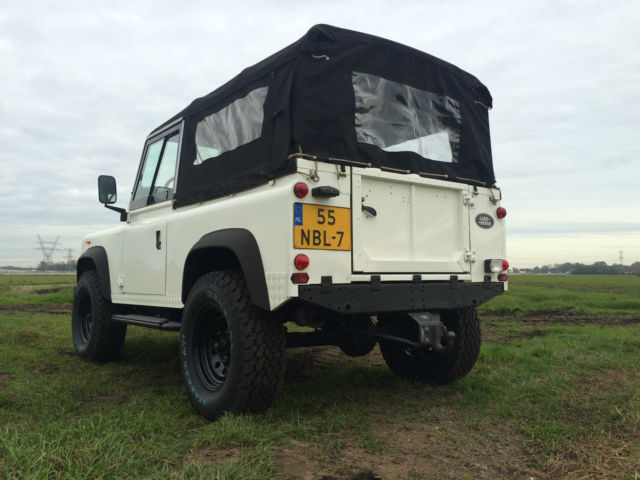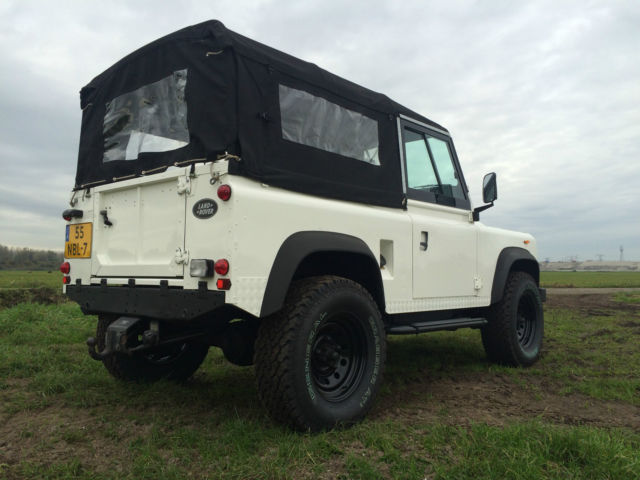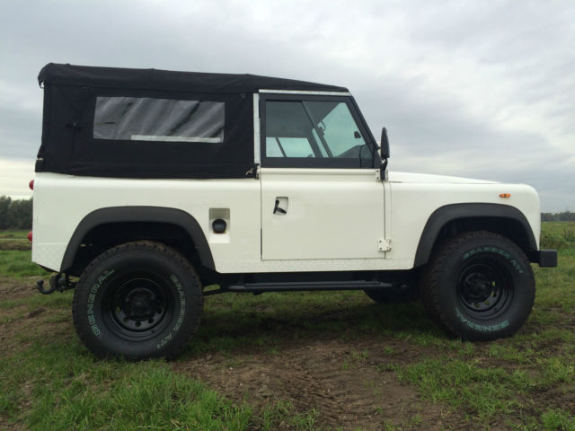 For sale is this factory original 1985 Land Rover Defender 90 Softtop LHD with perfect 2.5 diesel engine. It was professionally repainted, new wheels and tyres, ew doors, ew rear door, ew seals, ew windscreen, ew lights, new loading bay Land Rover rubber mat, ew seats in the rear, ew seatbelts in the rear, s good as new seats in the front, lack softtop which is just half a year old, s new softtop frame, ully gone over mechanically. The car runs and drives very nice. As for cosmetic: The car is in very good condition, cleaned out the complete chassis with rotating disc and stealbrush, nd gave it an undercoating. one spot welded in the rear cross member. I did not take the car apart to the chassis to guarantee the US customs entry. the seats are as new with the seatbase of the drivers seat being new. The rubber mats front are in very good condition. The seats in the back and the rubber LR mat in the back are new. The softtop is maybe half a year old, s is the softtop frame. If desired I can fit a tyre on the bonnet, o problem( that will be a standard wheel.) . this even makes it more easy to flip the front screen when you would like to do that in summer. it can rest on the spare. Original European registration documents present and included, s well as bill of sale. Price is shipping not included. Car is located in Weesp (near Amsterdam), he Netherlands. Everybody is welcome to come over and check the car out and do a test drive. This is a fantastic truck that you can use as a daily driver or as a fun toy for the weekends and to the beach.