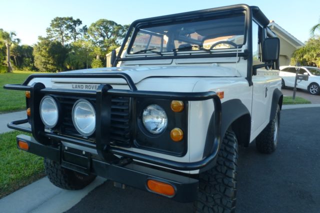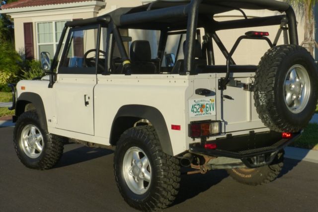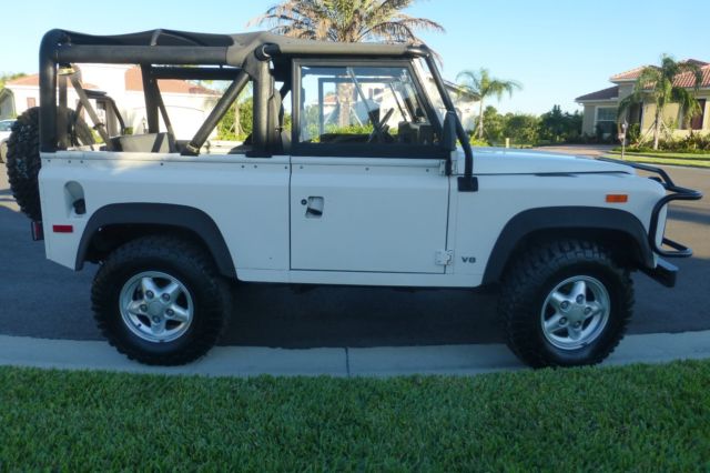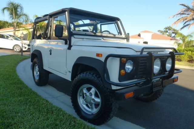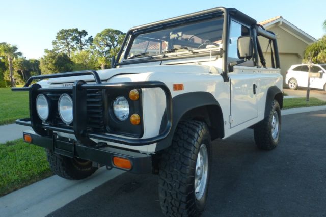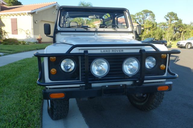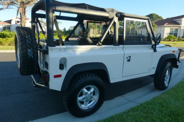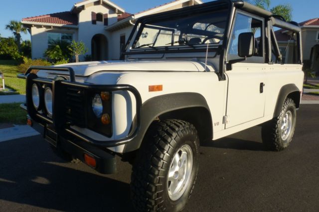 RARE 1994 RANGE ROVER DEFENDER 90, 1 OF ONLY 500 IMPORTED IN 1994. PERMANENT FOUR WHEEL DRIVE, CLEAN CAR FAX !! ALPINE WHITE WITH BLACK INTERIOR. 1 OWNER, 49,700 MILES. ALL ORIGINAL WITH THE EXCEPTION OF A MAGNA FLOW EXHAUST, NEW BATTERY, ALMOST NEW TIRES, (SPARE IS NEW AND HAS NEVER BEEN ON THE GROUND), 3.9 EFI V-8, 5 SPEED MANUEL TRANSMISSION, 2 DOOR CONVERTIBL, SAFARI CAGE, 14 GAUGE STEEL LADDER FRAME, ALUMINUM BODY PANELS, ALLOY WHEELS, BRUSH BAR, SURI TOP (LIKE NEW), SOFT TOP IN GOOD SHAPE, REAR SEAT, LAMP GUARDS, CLASS 111 HITCH, AND MORE. RECENT CLUTCH AND BRAKES. BODY IS IN EXCELLENT CONDITION WITH 1 MINOR DENT BY DRIVES DOOR 1/2". COUPLE OF CHIPS IN THE PAINT THAT HAVE BEEN TOUCHED UP. MINOR SURFACE RUST ON FRAME ( IT IS A 1994) NO RUST ON BODY. ORIGINAL OWNERS MANUALS. THE DEFENDER LIVED ITS WHOLE LIFE IN GARAGE AND WAS USED AS A 3rd VEHICLE WHEN NEEDED. RARE FIND.. QUESTIONS ?? CALL ME @ 516-662-9083 WARREN OR TEXT ME THRU E-BAY. VEHICLE IS LOCATED IN VENICE FLORIDA AND IS AVAILABLE FOR INSPECTION. NO DREAMERS PLEASE, IF YOU ARE LOOKING AT THIS VEHICLE YOU KNOW HOW RARE THEY ARE AND HOW MUCH IT IS WORTH..