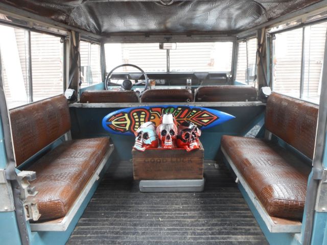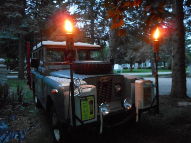 1971 Land rover ...........tiki bar cruiser, alligator seats,head liner,want to stop traffic? this truck does it,diesel 4 clyinder 1981 drive train 4 speed stick,this Land Rover is a traffic stopper, done with the Tiki bar theme,perfect bar truck, theme of tropic islan, gas tanks in front look like beer tapper, rims are sandblasted, new 5 tires,new gaugesnew toggles, light upnew alligator front rear seats,headlinernew glow plugsnew injectorsnew large battery........750 cranking powernew wiringnew diesel fuel electric fuel pumpowners manualno steel all alumium bodygreat galvinsed frameeverything works but windshield wipers, died last weekheadlights moved to grill, for the old African looklarge lights are high-low..........small lights in grill are just lowruns drives well, top speed is 55but second gear sycro is shot, so shift from 1-3 then 4thno reserve auction,correct title in my namequestions? feel free, extra pictures just askno reserve auction, On Jul-04-18 at 04:33:34 PDT, seller added the following information:my cell phone number is 313-909-2672 I do not text, please call from 8 a.m. to 5 p.m. Michigan time
