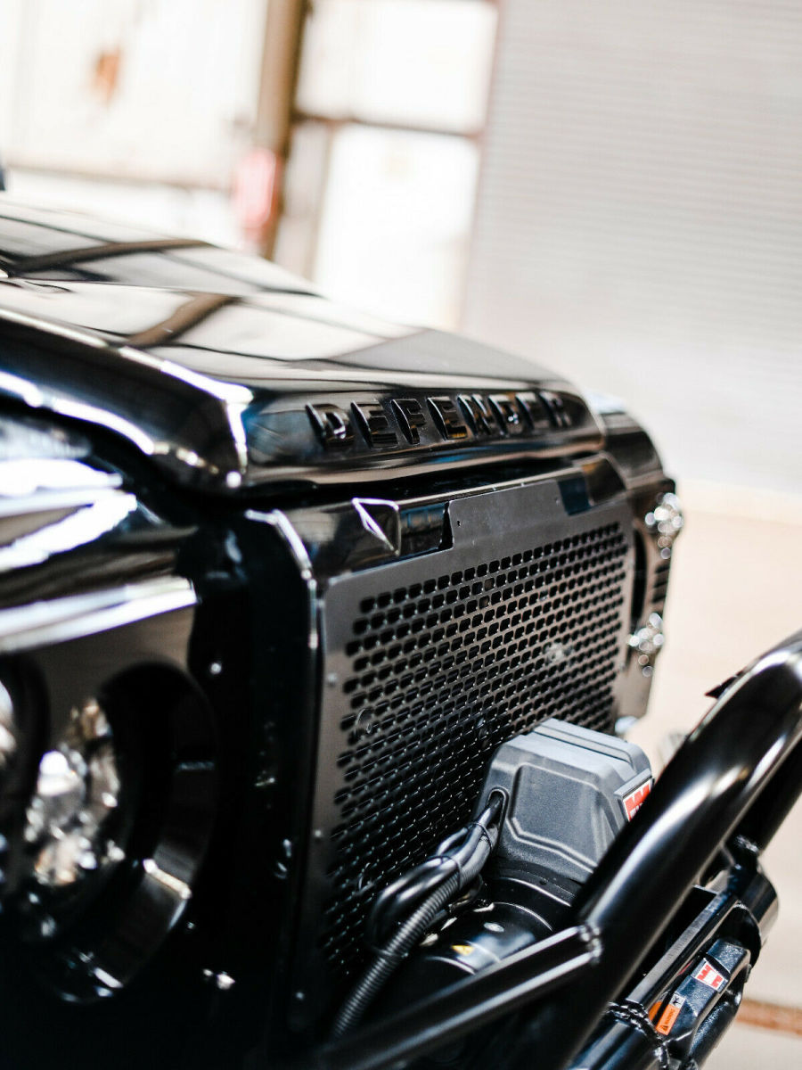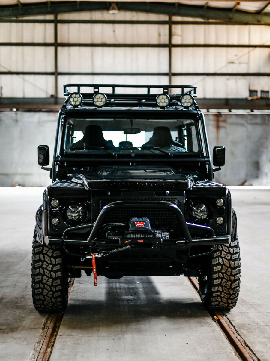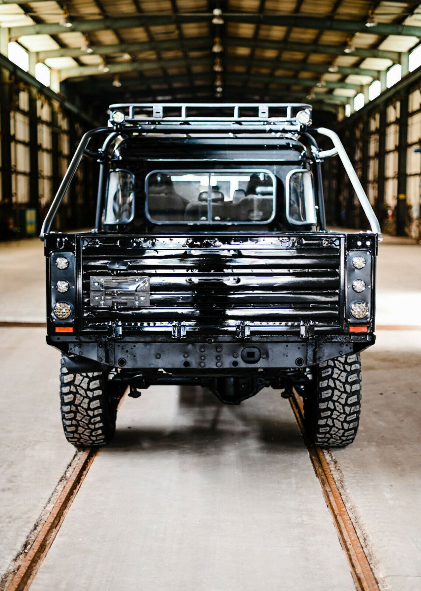 1994 LAND ROVER DEFENDER 130 BUILD SPECS HAND-CRAFTED vin number SALLDKHF8LA937884 - 6.2L LS3 V8 w/ approximately 435HP / 425lb-ft torque - 6L80E 6-speed automatic transmission - HD LT230 transfer case w/ silver alloy selector knob - PCS GSM push-button transmission shifter w/ LED gear position indicator - PUMA-spec bulkhead - PUMA-spec front & rear axles - Custom front & rear driveshafts - HD springs w/ Terra Firma shock absorbers - HD Terra Firma steering damper - HD steering arms - HD caster-corrected front radius arms - HS caster-corrected rear control arms - Front & rear anti-swaybars - 4-wheel power disc brakes - Polyurethane suspension bushings - Griffin MegaCool aluminum radiator w/ dual electric cooling fans - Custom stainless-steel exhaust system - Saudi-style grill for increased airflow & engine cooling - HD aluminum sump guard (skid plate) - PUMA-spec bonnet w/ Optimill billet aluminum bonnet & windscreen hinges – powder-coated gloss black - 20†Kahn “Mondial Retro Light†alloy wheels x 4 – powder-coated satin black - 275/65R20 Cooper Discoverer STT Pro tires x 4 - Extensive sound-deadening & heat shielding throughout - Push-button starter w/ LED backlighting - Corbeau diamond-stitched Lucari black leather seats, heated front & second row - Leather-upholstered PUMA-spec dash w/ upgraded HVAC - Piano-black finish center binnacle w/ Optimill silver anodized billet aluminum HVAC control knobs - PUMA-spec instrument cluster - Leather-upholstered front & door cards - MOMO "Race" steering wheel - Viper remote-locking security system & remote start w/ 2-way remote keyfob LCD display - LED headlamps, tail lamps, marker lamps, turn signal lamps - Auxiliary LED off-road lamps mounted to roof rack - Auxiliary LED work lamps mounted to roof rack - Power front & rear windows & door locks - Custom full-length, leather-wrapped, dual cubby-box center console w/ 2 aluminum cupholders - Wireless charging pad inside center console - Rear HVAC w/ separate controls - Dual USB charging points in front & rear of center console - Pioneer AVH-W4500NEX 7†touch-screen, double-DIN, wireless mirroring, Bluetooth Android Auto & Apple Car Play, in-dash DVD/CD stereo receiver w/ integrated reversing camera - JL Audio silk dome tweeters, 4†& 5.25†speaker array - LED ambient interior lighting throughout passenger cabin - Optimill silver anodized billet aluminum interior & exterior door handles, interior door pulls, fuel filler cap - Optimill billet aluminum side mirrors w/ integrated LED puddle lamps – powder-coated gloss black - Safety Devices exoskeletal roll cage & roof rack – powder-coated satin black - Terra Firma front winch bumper – powder-coated gloss black - Warn VR 10-S 10,000lb winch - Terra Firma rock sliders w/ integrated tree bars – powder-coated gloss black - 5-bar wing top protectors – powder-coated satin black - HD front & rear rubber floor mats - Finished in Land Rover Santorini Black |