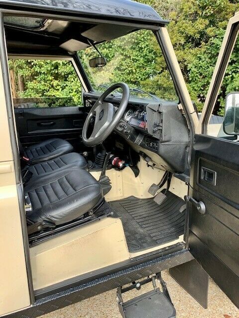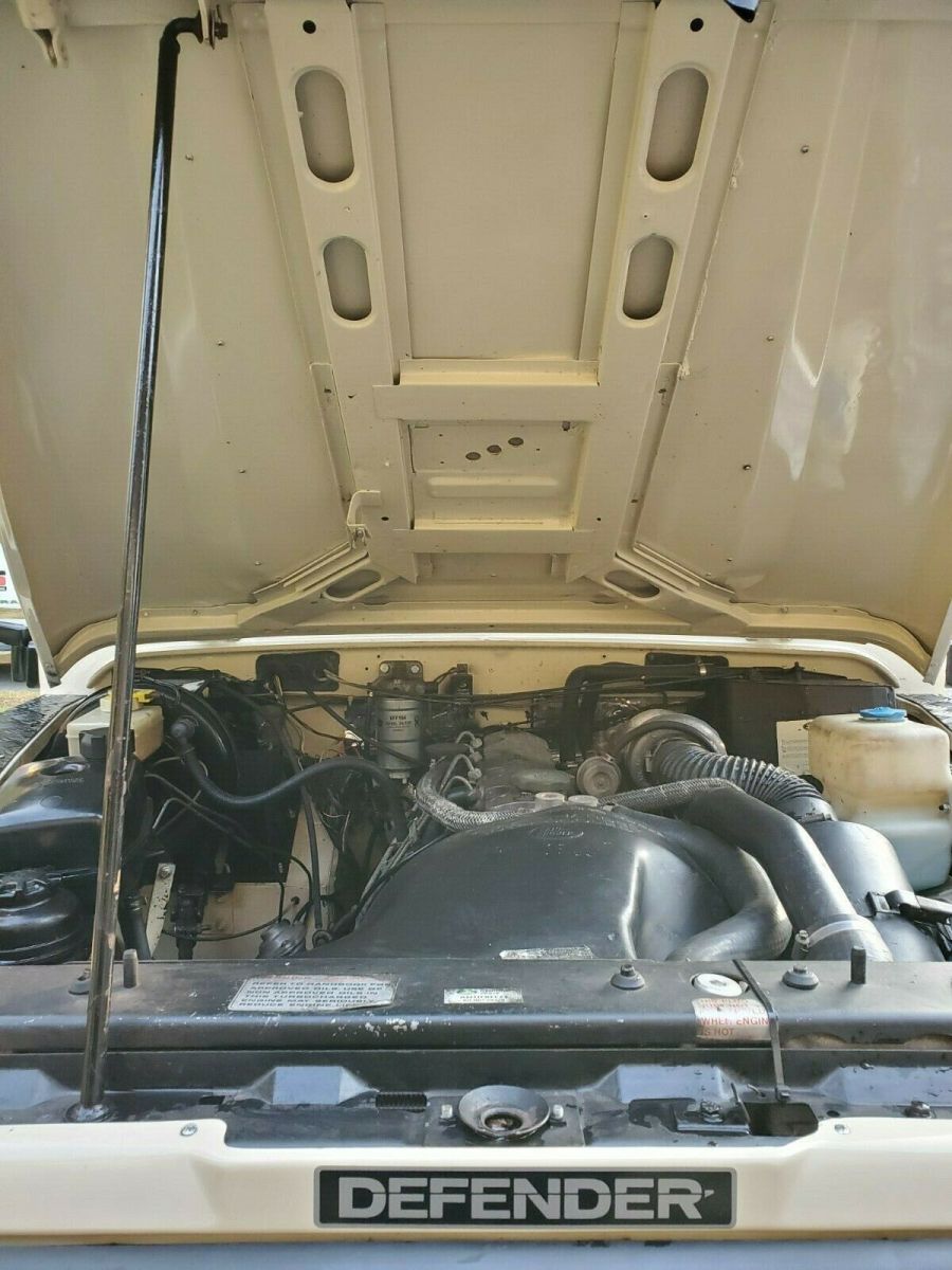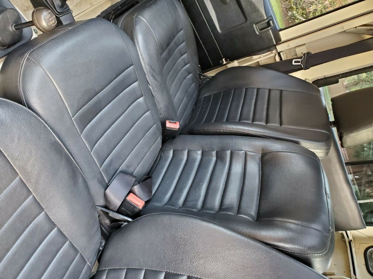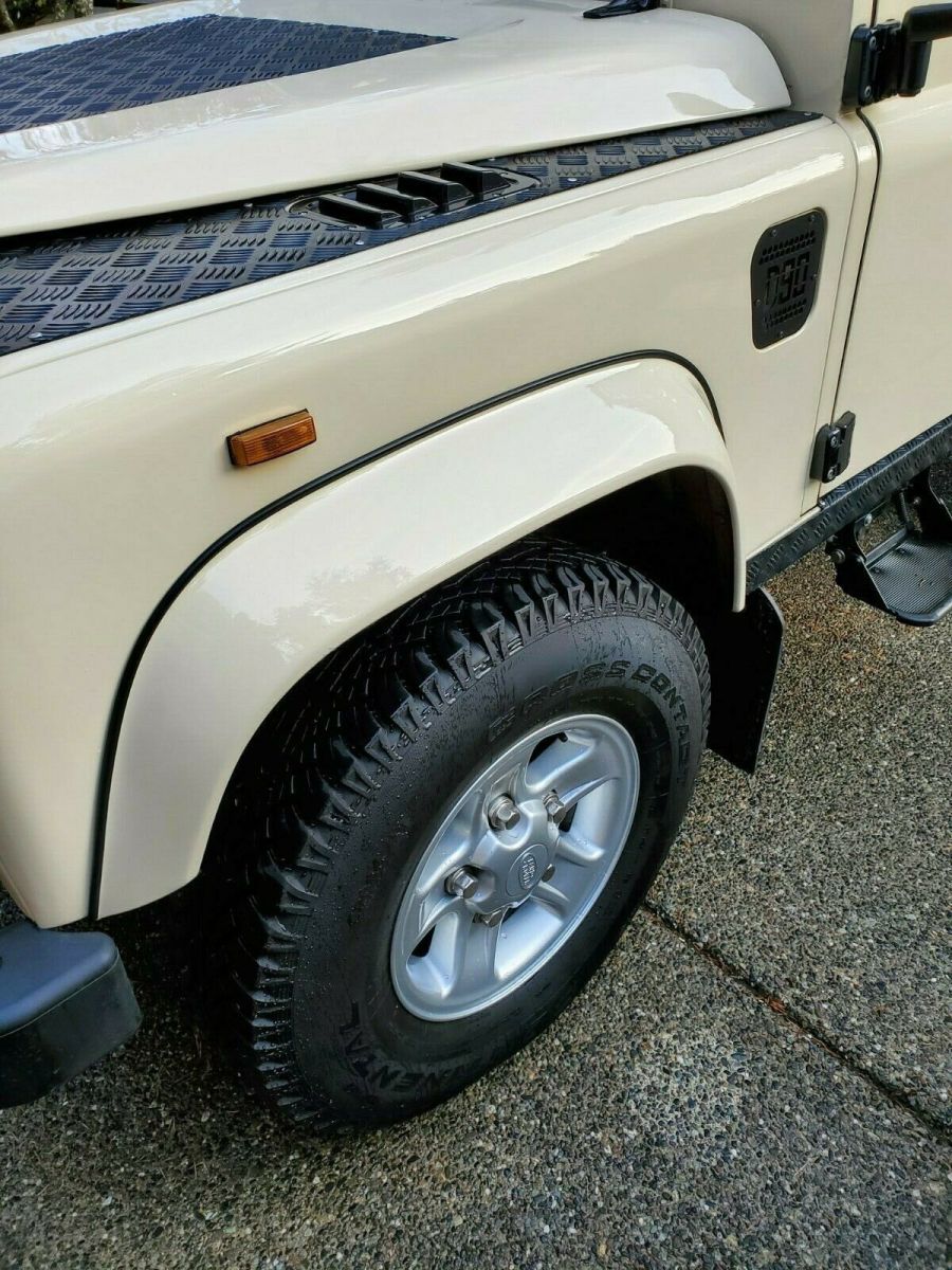This 1991 Land Rover Defender 90 is a right-hand-drive example that was imported to the US from the UK in 2018 and is powered by a 2.5-liter 200Tdi turbo diesel inline-four paired with a five-speed manual transmission and a two-speed transfer case. The truck experienced a frame off restoration and was repainted in its current shade of tan with a black roof prior to its importation to the US. Equipment includes a black vinyl interior with side-facing rear jump seats, diamond plate exterior trim, hinged side steps, 16″ alloy wheels, and tinted windows. Work in January 2019 consisted of replacing the power steering box, water pump, ignition switch, steering swivel seals, and more (over $6000 w/receipts). Previously finished in blue, the body was removed from the frame and refinished in tan prior to its importation to the US in 2018 (have pictures). The body-colored removable hardtop features a black-painted roof as well as sliding side windows, a pop-up sunroof, and diamond plate trim on the fenders, hood, rocker panels, and rear corners. The 16″ alloy wheels wear Continental Cross Contact AT tires measuring 235/85. A matching spare is mounted to the tailgate. Service in October 2020 included replacement of the steering box and rear center ball joint as well as resealing the front steering swivel assemblies. The cabin features three individual front bucket seats upholstered in black vinyl, while the cargo area features black carpets and inward-facing jump seats. Replacement heater control cables were installed in January 2019 along with a new ignition switch. The radio currently is inoperative. A two-spoke LR steering wheel frames stock instrumentation including a 120-mph speedometer. The six-digit mechanical odometer reads 126,500 miles, around 1k of which have been added over the last two years. The 2.5-liter 200Tdi turbo diesel inline-four was serviced in January 2019 with a new water pump, accessory belts, coolant, and more as outlined on a receipt provided. Power is sent to the rear or all four wheels through a five-speed manual transmission and a two-speed transfer case. The rear pinion seal was replaced and the transmission, transfer case, and differential fluids were changed in preparation for the sale. This Defender runs like new and includes photos from the repaint, recent records, importation documents, a clean Carfax report, and a clean NC title in the seller’s name. Someone will get a great, vintage truck that drives like new at a fantastic price. VIN# - SALLDVAF7JA907030 |
