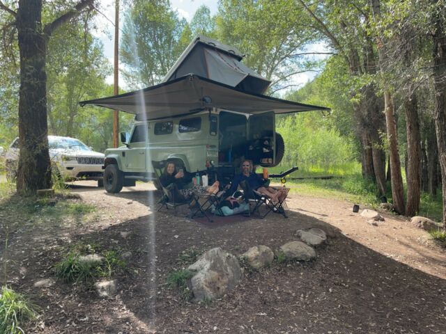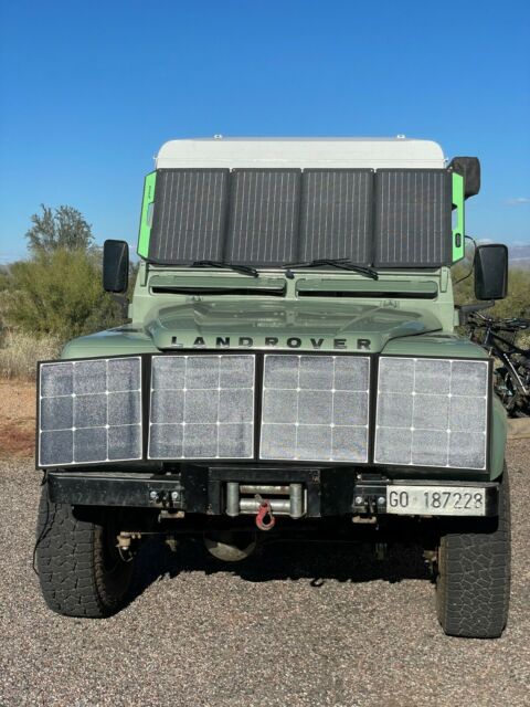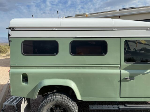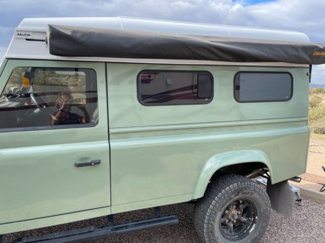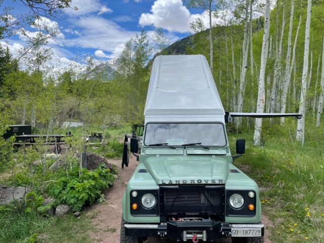 This was built to cruise the Americas with confidence and comfort. I chose every detail of this build so that it had best of breed items while trying to maintain its UK heritage. Everything mechanical has been replaced with new or remanufactured except for the transfer case, which is bomber. It drives great on the highway (75-80 straight as an arrow) thanks to performance engine upgrades, air conditioning, 4 wheel puma disc brakes, a soft suspension with 6 degree caster correction as well as anti-sway bars front and rear. ( see video of 70mph at https://youtu.be/Rc0-lffv9XU )When it's time to go offroad, well it's a Defender and this one is perfectly setup for Overlanding with Alucab top and awning, 3" adjustable OME BP-51 suspension, heavy duty axles f/r, Detroit TruTrac f/r, Wildpeak AT tires, Warn 8000# winch with interior remote and much more. The comfort and safety of camping in an Alucab vehicle is unique. You'll find a 6" inflatable Exped mattress up top, a huge dual fold sleeping area, 8' standing room, inward facing seats down low, National Luna 60L fridge/freezer, LifeBlue 100ah lithium battery with bluetooth, Redarc dc to dc charger with mppt solar, two 120w portable solar panels, quilted window coverings and plenty of storage (hidden under the curbside rear seat and utilizing the spare tire carrier rack mounted to the driver side). I tried to keep this as low key as possible for a Defender, so can't see storage or water tank from the exterior and you can't see in thanks to the Limo tint in the rear. This is an Overlanding vehicle so cosmetics were secondary to function, but it is a great looking vehicle. The Grasmere Green paint color looks great, but there are some high use areas where paint is flaking. There is no rust but the front and rear doors have small areas that are corroding because of the aluminum and steel build. Below are the full specs:- Alucab Icarus camping roof conversion