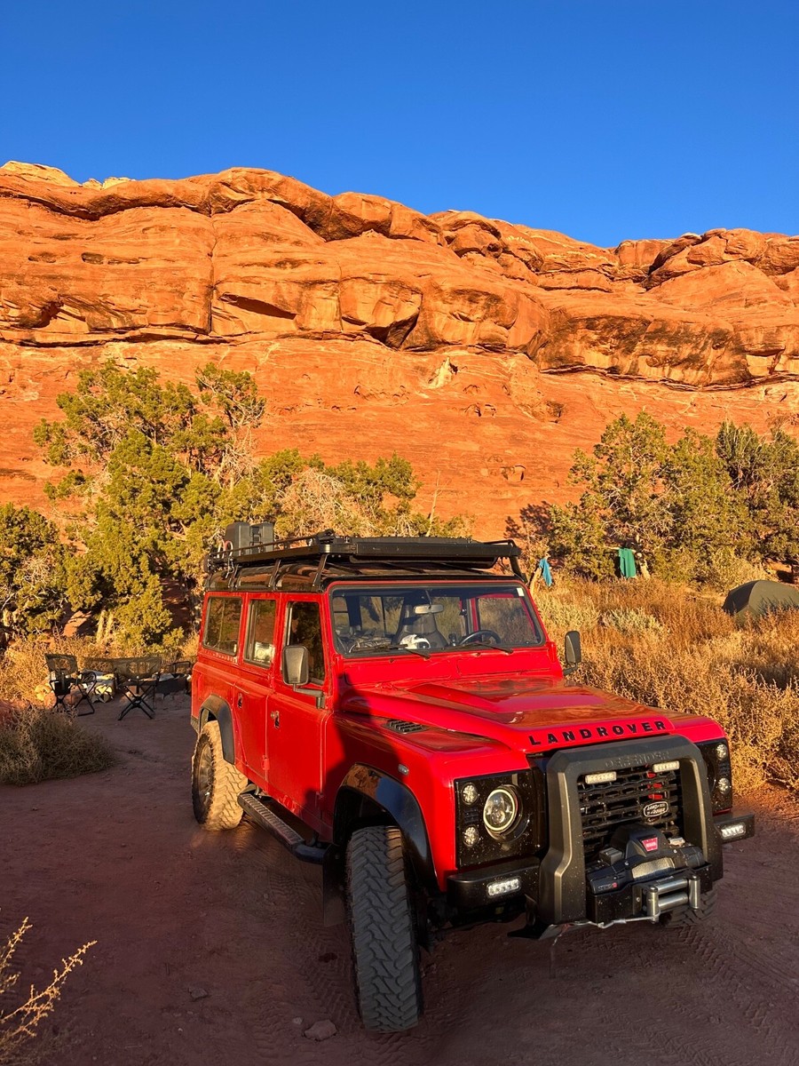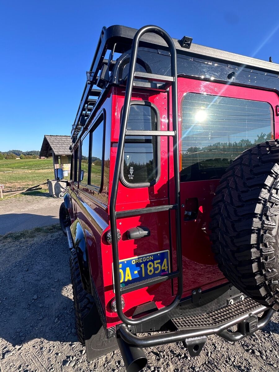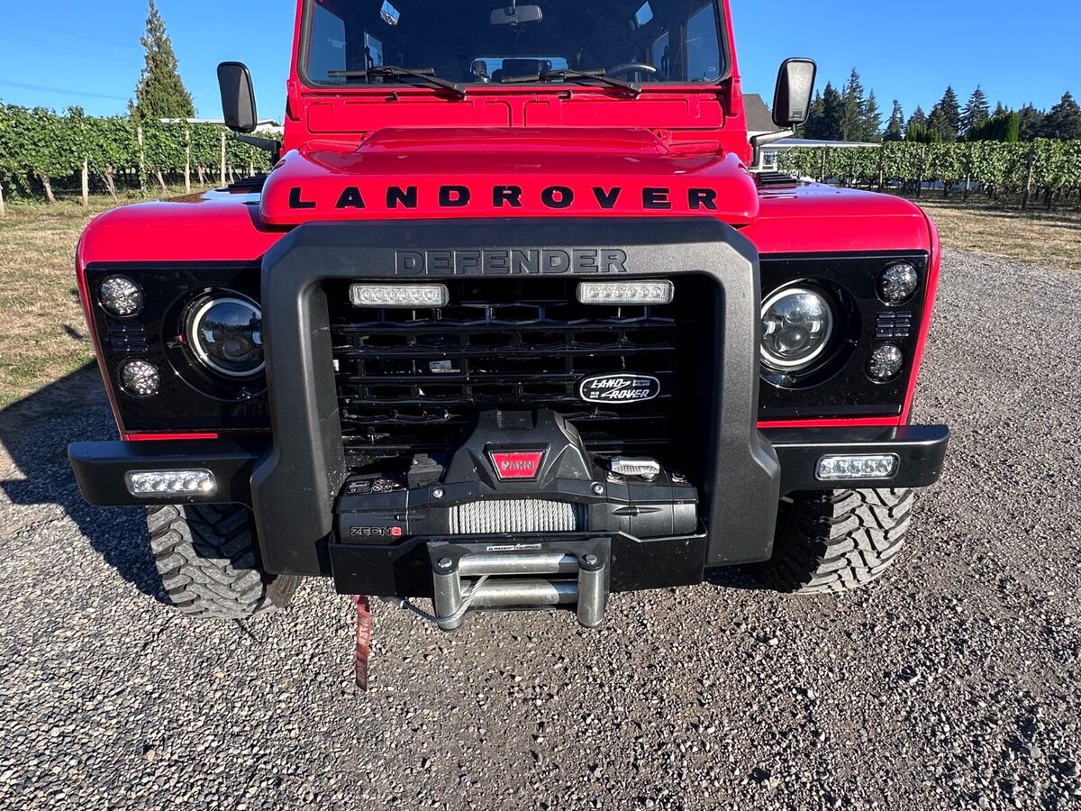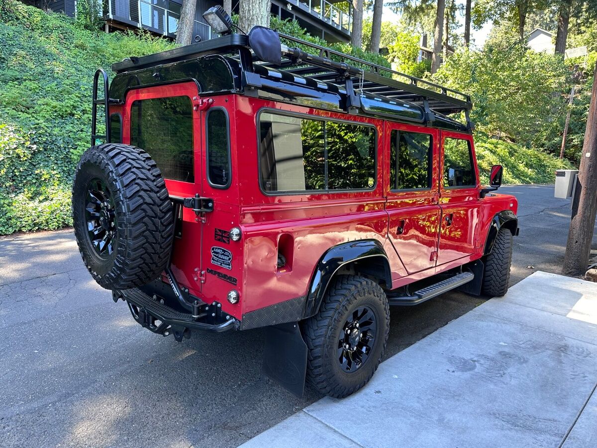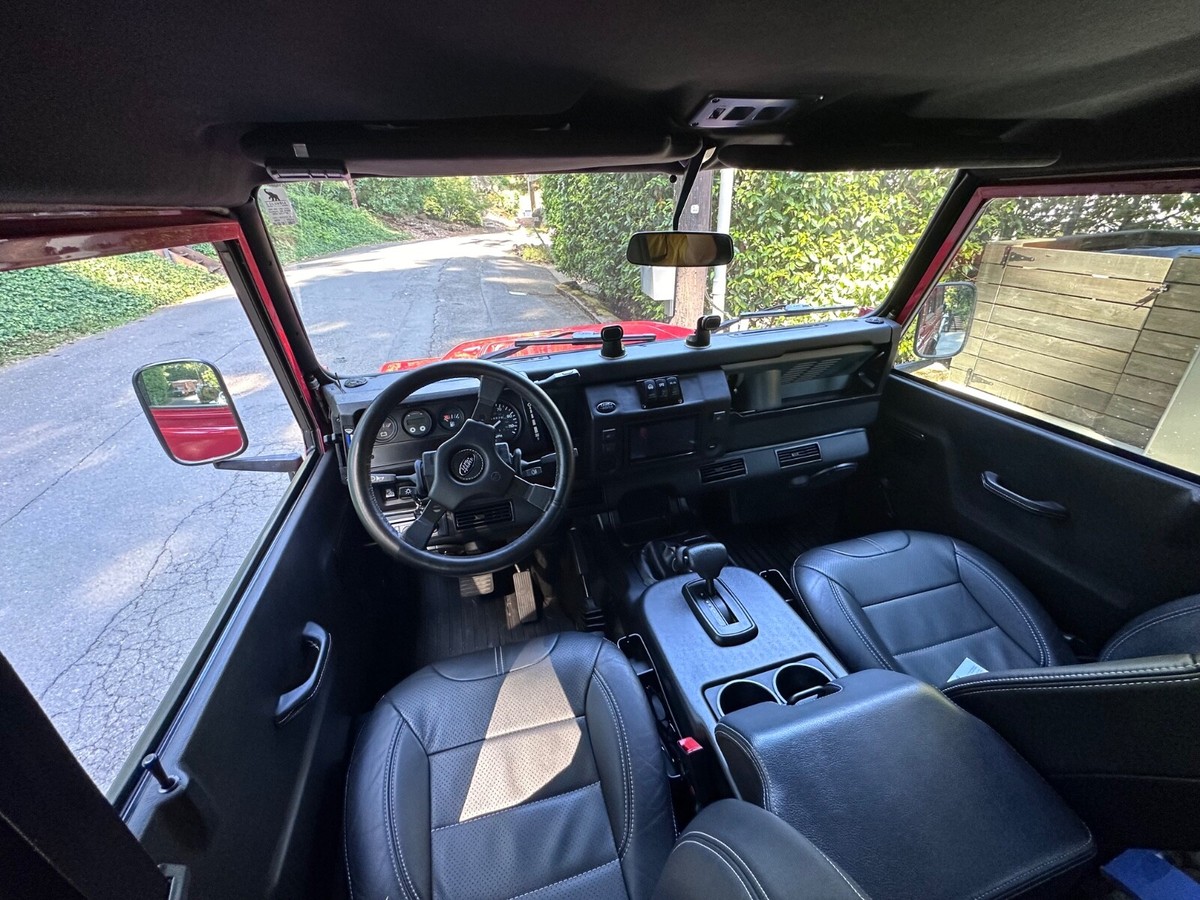 Fully restored 1985 Land Rover Defender 110 with new Cummins R2.8 Turbo Diesel engine and 4 speed transmission and just 14,464 miles. The seller was told the vehicle was originally sourced from Switzerland where it served as a support vehicle for a local fire department. Prior to purchase, the vehicle was restored by Outland Motors in Bend, Oregon, save for the engine and transmission. Body work included painting the vehicle Portofino Red (the vehicle was previously a lighter shade of red). The seller acquired the vehicle from Park Place Motors in Bellevue, Washington in 2020. In 2021, the engine was replaced with a brand new crate engine, a Cummins R2.8 Turbo Diesel and transmission, by British 4x4 in Reno, Nevada. Air conditioning was also installed and brakes were upgraded. Cruise control was installed. Approximately 8,000 miles have been added since the engine swap. This vehicle is in amazing shape and has been meticulously cared for. Many features have been added under current ownership including a Front Runner Slim Line II roof rack, light bar, rear work light, Defender seat box corner protectors, Defender cargo door protector. Modern creature comforts include heated seats, automatic door locks, cruise control, interior dome lights, 7" screen, Apple CarPlay, 2 USB ports, Lucari leather seats (front) and Exmoor leather seats (second row). Seller is not aware of any accidents in the vehicle's history. INTERIOR Air conditioning Cruise control New carpet throughout Lucari front seats (heated) in leather Puma/Exmoor full leather seats in second row. Heated front seats Leather cubby box Custom sound system: Kenwood eXcelon unit with 7” screen and Apple CarPlay, Hertz 5.25” speakers (front), Hertz tweeters (front) Kenwood eXcelon 6.5” speakers in rear, JL Audio 8” subwoofer, JL Audio subwoofer control knob, JL Audio 4-channel amp and sub-amp LED dome lights 2 USB ports New tip-up bench seats Auto door locks on all 5 doors Full-length Alcantara suede headliner Backup camera RAID leather-wrapped steering wheel with Land Rover center badge Defender door mats Defender seat box corner protectors (front) Defender tailgate trim/plate EXTERIOR Portofino red with black roof and black wheel arches Frontrunner Slimline II roof rack Frontrunner quick-release awning brackets (awning not included) Frontrunner 4” rear work light with dual switches in cockpit and in cargo space Frontrunner bottle opener Frontrunner shovel/spade mount 40” Frontrunner LED lightbar LED Headlights with KBX surrounds Land Rover Spectre front bumper with integrated LED lights Rear LED lights Puma GRP bonnet Genuine Land Rover tube-style side steps Skid plate Old Man Emu suspension with 2 inch lift Rear NAS step bumper “Defender” A frame nudge bar Warn winch Genuine Land Rover Adventure grille in Santorini black Tinted windows New Hi-force wing top vents in satin black Mantec Swing away spare tire carrier 2” towing receiver New black tailpipe tip in satin black “Land Rover” bonnet badge “Defender” rear badge 265/95 r16 Arturo Trail Blaze all-terrain tires and Sawtooth alloy wheels MECHANICAL New Cummins r2.8 Turbo diesel ZF HP24 4 speed manual transmission Ron Davis full-length intercooler Upgraded brake calipers, rotors and pads |