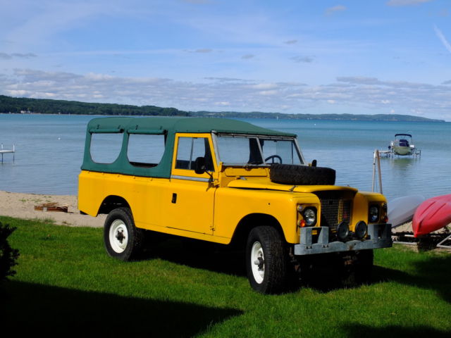 | 1971 rover. was a british army nato ambulance. us drive side as it lived in amsterdam. condition is pretty much original unrestored. camo paint replaced with british auto club yellow. new top tires shocks fog lights. stretcher racks replaced with bench seats. very straight truck. great for getting around the farm or as a super platform for all out restoration. runs very well. even hasogah horn |
