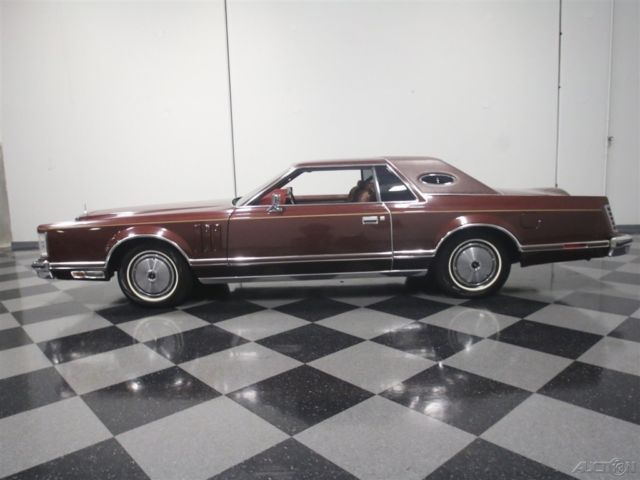 Despite decades of engineering progress, nobody has managed to duplicate the floating, effortless feeling of a true American Luxury car like this 1977 Lincoln Mark V. With a giant V8 up front, chiseled features, and a long list of features, this is as close as you're going to find to the ultimate American luxury car experience. If you were at the top of the world in 1977, THIS is what you drove. With such careful maintenance on this car, you know the bodywork is in good shape. Body gaps and fit are still just as the assembly line workers bolted it together, and the paint is as nice as 1977 technology would allow, although there are the expected signs of age. The color is elegant and sophisticated and doesn't date the car as badly as some of the other choices available in 1977, making this one a great choice for the serious collectors, and a professional buff would really make it shine once again. The original burgundy vinyl padded half-roof remains in outstanding, unblemished condition thanks to years of careful ownership, and the chrome is in great shape and there sure is a lot of it! Lenses, the hood ornament, and the rub strips along the lower flanks of the car are all in great condition. And yes, the folding headlights work properly. We see a lot of these cars, and this one is better than most. Inside, the burgundy cloth interior is the epitome of '70s fashion and luxury. Sure, it looks a little bit like Hugh Hefner's living room, but you can't argue with the preservation and amazing comfort levels. You are enveloped by a soft power driver's seat, which offers plenty of support for long-haul cruising, making this a fantastic road trip car. There are a lot of controls for all the power options, ranging from power windows and locks, to cruise control on the steering wheel, to the beautiful clock nestled into the dash. Of course, A/C and a tilt wheel are included, and the original radio is in the dash but has been supplanted by an AM/FM/CD unit underneath. Deep pile carpet and tons of sound insulation reduce wind noise to little more than a whisper and there's simply nothing else that feels like one of these '70s land barges. Even the trunk shows well, with mouse fur mats and what may be the original space saver spare tire with a complete jack assembly. Lincoln's 460 V8 won the displacement war, as Cadillac downsized to a 425 V8 in 1977. Entirely original and showing proper maintenance, the engine bay is packed with wires and hoses, all dedicated to making the big Lincoln waft along in eerie silence. The big V8 makes enough torque to give the sensation of limitless acceleration, much like an electric motor, and drives the power accessories without hesitation. Hoses, belts, and other routine maintenance items have been replaced, but for the most part it's 100% stock and original under the hood. A C6 3-speed automatic shifts almost imperceptibly, and with 2.73 gears in the 9-inch rear end, this car is as great a highway cruiser as you'd expect. It's super clean underneath, obviously coming from a southern climate, and it sits on big 235/75/15 whitewall radials and simple hubcaps for a classic Lincoln look. The world will never again see cars like this, and you'll be amazed by how well this one looks, drives and handles. Lincoln knew what it was doing when it built this car, and one drive will show you the way. Call today!