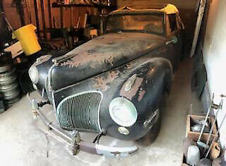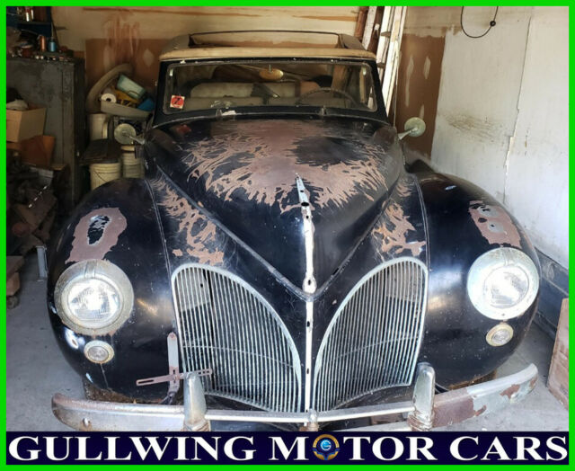 Rare and Collectible 1941 Lincoln Continental Cabriolet: One of only 400 Continental convertibles Built in 1941 This 1941 Lincoln Continental Cabriolet is an excellent original car that's been sitting in garage storage for the last 35 years patiently awaiting a well-deserved restoration. Black with ivory interior. One of only 400 Continental convertibles produced in 1941. A desirable year for the Continental Convertible, original examples like this are becoming harder to come across and are increasing collectible. The car is mostly intact and has not been driven in 50 years. The engine currently installed is a modified Ford V8, but the car comes with a 1941 Lincoln V12 motor as well. The original hood ornament is also with the car. It comes with many spare parts including chrome trim and lights. First-generation Lincoln Continentals continue to be well-regarded for their restrained elegance and early cars will always attract admiring attention. Price: $19,950