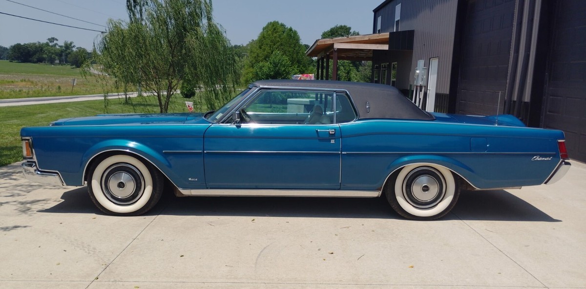 1970 Lincoln Mark III 2 Door Survivor 365 Hp 460 V8 Automatic Runs and Drives Like a Dream It is Like Driving a Couch. We Bought This Lincoln Through an Estate, Clear, Clean Title in Hand. These Cars Are Super Rare and Are Not Getting Any Cheaper, and this Car Has One of the 2 Rarest Paint Colors, that was offered that year. It is J Code 2137 Deep Blue Poly, "GORGEOUS COLOR", This is a Nice, Solid Car... Clear Clean Title in Hand, *80,XXX ACTUAL MILES*. This is a 1970 Lincoln Mark III 2 door, (nice body and paint) super rare deep blue poly, white leather interior and a black padded vinyl top, this car cost $7800 in 1970 when it was new, roughly equivalent to $65,089.37 today, the average cost for a new vehicle today is $48,000, this car was and still is the cream of the crop. Is the car perfect, no, it is a survivor car, super well taken care of, however, it does have scratches, scraps, paint chips, bruises and a couple places of surface rust, but this car is still an 8 out of 10 and it gets attention and compliments everywhere it goes. It has a 7.5 liter 460 V8 that runs great and a C-6 automatic transmission. It is an old Hot Rod Lincoln, with factory 365 horsepower and it is loaded, white leather pillow interior, power everything, and windows roll up & down just fine and A/C, has been garaged it's entire life, as I understand, it never sat outside overnight. It has a new battery, heater core, new gas tank, new tune up, new water pump, new spark arrester mufflers, new fuel sending unit, new radiator, new transmission filter kit, new oil change, new oil & air filter and new tires. The car just sits in the garage, It is a cool old car that needs to be driven and enjoyed. N.A.D.A. values this car at $21,675 low book, $32,750 average book and $43,800 high book, MY BUY IT NOW IS $22,000 Call/text8123967836with any questions Located in Vincennes, Indiana which is the forum state. I will not accept Ebay's Caramel payment, Lincoln is sold as is / where is, there are no warranties expressed or implied, nor guarantees expressed or implied regardless of description.