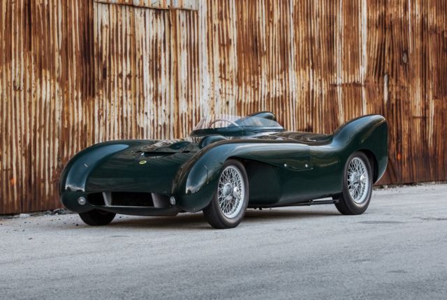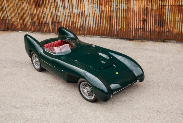 The year was 1955, the mortar between the bricks of the Lotus factory had just dried and Mr. Colin Chapman had come up with a new racecar. Known as the Lotus MK9, it was a light and potent sports racer that was the first Lotus to break away from the heavier American engines previously used for this car was designed specifically to fit a 1100cc Coventry Climax power plant. This was also the first Lotus to ever be sold as a complete car to the public, with roughly 30 examples built and approximately half of those units making their way to the U.S. The MK9 was fitted with an aerodynamic aluminum shell that overlaid a MK6 inspired frame for its ruggedness and durability. The 4-speed gearboxes were typically borrowed from the MG-TC and those in “Le Mans” specification were coupled to a DeDion rear, a marvel of engineering at the time. The first two MK9s were completed by March of 1955 in preparation to compete at the Sebring 12 hour race where they saw some success, allowing the car to gain credibility in America as a competitive racer, but that spot light was short lived. Not long after the MK9 debuted, they were rapidly left behind by the introduction of the Lotus 11, making them essentially obsolete in comparison. However, the MK9 had made its mark in the history of Lotus and is symbolic of the very early days of the aspiring automotive company. The example on offer here is a 1955 Lotus MK9 “Le Mans”, chassis number MK9110, Coventry Climax engine number FWA6397, boasting a well-kept older restoration. Given the MK9 came about as Lotus was just getting their start, proper records of these cars are hard to come by as there is limited information available on the history of each example. However, some documentation of this car was able to be located, offering insight to the story of chassis number 110. In this documentation is a series of racing results from 1955 through 1957 of this car’s performance being campaigned in Southern California by the husband and wife privateer team; George and Ingra Buchanan of “Scuderia Excelsior.” There are some photos that show the car carrying the name “Mickey Mouse II” as noted in Lotus historian, Michael Marsden’s write-up on the MK9. Its competition history includes races at Torrey Pines, SCCA National Glendale, 6-hour Torrey Pines, 1-hour Torrey Pines, Palm Springs, Santa Rosa, Santa Maria, Paramount Ranch, and Stockton. This Lotus never managed to make it to the podium but had several notable performances, finishing 4that Paramount Ranch and 6thin the Preliminaries at Santa Maria in 1956 and it has been noted that famous west-coast Lotus importer, Jay Chamberlain drove the car on occasion for Scuderia Excelsior. We have also been able to uncover a real gem of this Lotus’s racing history, encompassing a tense moment for the car’s second owner, Mr. John McLaughlin in this MK9 at Paramount Ranch. A digital copy from the Los Angeles Times dated August 20, 1956 showing a photograph of a Mr. Nick Joy having a nasty spin in an MGA right in front of this very Lotus but thankfully able to avoid any collisions. Beyond this not much history is known. According to the previous owner the car remained unused and stored with a Lotus 11 until the 1980’s when the pair were purchased by a collector in Seattle who restored the MK9, briefly enjoyed it at the Monterey Historics Lotus Reunion in 2003. After which it remained in a collection largely un used. The exterior of this example is absolutely stunning to look at, as the design is so elegant and just plain gorgeous with the pontoon fenders resembling that of a 250 Testa Rossa, the bumps, fins and full fairing cockpit gives you a little something from all the great sports racers of the period. The British racing green paint has been nicely kept, having developed some minor flaws but in the context of a 50’s racing car is completely acceptable. Under close inspection, one will find paint chips surrounding one of the headlamp openings in the hood as well as specking around the small stationary lights. There is also a small scrape towards the bottom of one of the fenders, from what may have been a clearance issue. The aluminum body is straight with good shut gaps. Each panel is free of any significant dents with the only exception being a dime sized area on the passenger side rear fender where the metal has pushed slightly outward causing the paint to crack. It is suspected that a stone was kicked up by the tire and made contact with the inside of the fender. The plexiglass windscreen has fared well, incurring no cracks or hazing with only a couple light scratches to make note of. The painted wire wheels are in good shape, with only a few minute specs of surface rust at the edge having developed in some areas where paint has chipped away. Peer into the red interior and it becomes increasingly more apparent that this was designed to be a simple and light sports racer, equipped with only the bare essentials. The door jams are nicely finished, free of any corrosion, scrapes, or scuffs. The red vinyl seats are trimmed with white pipping but would be better described as cushions rather than seats. Never the less, they are in great shape, and are undamaged with no noteworthy blemishes. The interior is very minimalistic with the only accompaniments being those needed for racing. The floors, doorsills, and center column are all bare aluminum as saving weight was a priority with this car. The dash houses the correctSmithsrev counter, accompanied byLucaswater temp gauge, oil pressure gauge, amp gauge, toggle switches, and relay box which all operate as expected. The correct steering wheel is present and without fault. Aside from those items, there is really not much else to be said regarding the interior, as it is so spartan. Lift off the front bonnet and there lies the 1100cc Coventry Climax power plant. The engine bay is very tidy, displaying no indicators of leaks or poor craftsmanship, as all componen