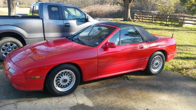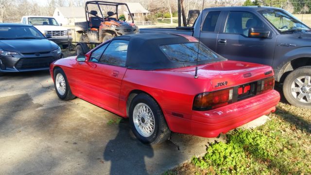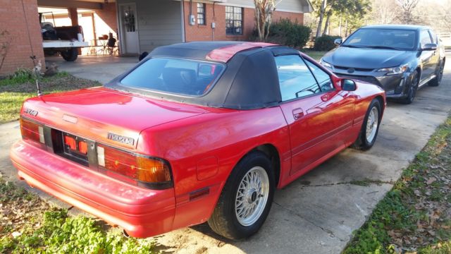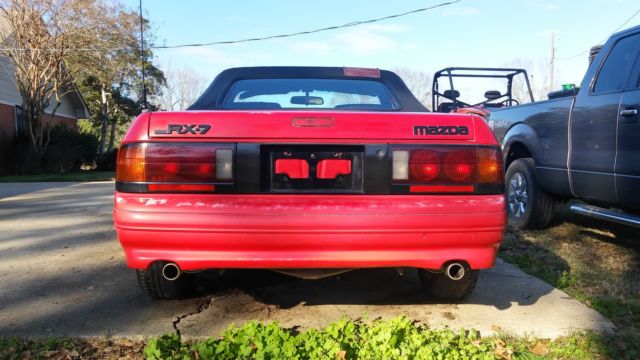 I've decided to put my Mazda RX-7 up for sale. This was my car in High School a few years ago and I have since graduated, oined the Air Force and am currently attending college. I bought this car because it was a sharp convertible and no one else at my school had one like it. After boot camp, purchased a Scion tC and the Mazda RX-7 has been sitting in my parents driveway ever since. I would crank it occasionally and my dad would drive it up the road and back occasionally but the last time he went to crank it, robably a year or two ago, e said the Air Control Valve seemed to have went out (don't get me wrong, e's not a mechanic). While I was driving it, installed a new exhaust systemfrom the manifolds back, lternator, adiator, lotted rotors, alipers and tons of other items that I can't remember. It has alcantera leather seats which are in great shape as is most of the interior. The exterior paint still retains a shine but does have some door dings and a couple of "thin" spots on the hood from waxing and buffing. The convertible top and drain boots are still good but the top does have one small leak in the rubber seal. There is also a 2 inch rip where the drain boot is on the driver side.This could be a running, riving sharp car again with a little TLC, ut I don't have the skills, ime nor the funds to do it and it's time for someone else to enjoy the car since I haven't driven it regularly in 3-4 years. This car is a classic and qualifies in my state for an Antique Tag but I haven't put one on it. I have not altered the originality of this RX-7 since I am the 2nd owner of this car. I bought it from the original owner out of Ft. Lauderdale, L. I have a fair starting price on this car since I could part it out for a lot more than what I'm starting at, ut I don't have time for that either with my schedule at school. This car is being sold as a non running vehicle so it is being sold with no warranty of any kind and will have to be shipped. I am listing it locally, o I reserve the right to end this auction early. I will require a $250 dollar nonrefundabledeposit via PayPal within 24 hours of auctions end with the remainder due within 72 hours by wire transfer, ertified bank check or cash in person. My car will not leave my possession until all funds have cleared my bank. I hate to see it go but it's time for someone else to pick up the ball, o a little work and enjoy it. NO RESERVE! High Bidder will win this auction! Thanks for taking the time to look, nd good luck bidding!