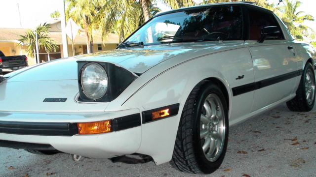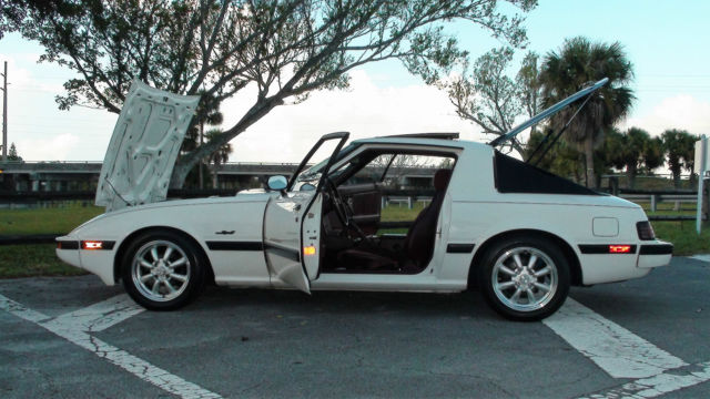 This is a great opportunity to own a Classic 1984 MAZDA RX 7 GSL with a 105,000 miles. This RX-7 has been extremely well maintained over the years. I am the third owner of this car. I purchased the vehicle from my father in law early 2000's He purchased the car from the original owner a customer at his business in the early 90's. As the car is over 30 years old it can now be registered as an antique. Its age and condition also qualifies it for collectors type auto insurance typically very reasonable. The RX-7 has been kept garaged. This RX-7 is a Florida car and is rust free. Since I have owned RX-7 it has been mostly used on weekend road trips. I try to run it at least monthly to keep seals soft and tight. The RX7 is a blast to drive. It has not been driven in the rain in over a dozen years. I have had 8 other ( including 997,987,356,740il ) cars during the time I have owned this one. I would rate the RX7 head to head with any of my other cars in the smiles per mile category. A spirited drive thru any turn will leave you wanting to do that again! This RX-7 is a real head turner. The engine compartment is very well detailed. Also very tidy are the suspensio, brakes, and interior. The paint shines up very well and is very good condition overall. The doors, sun roof, and hood align up extremely well. The glass is in great condition. No bondo anywhere on body. The power windows work. The gauges all work as they should. I replaced the seat belt as the originals were worn. The new belts are an excellent match with the car's interior color. The interior carpet is plush and in great shape along with deluxe carpeted floor mats The RX7 has been only slightly modified to optimize performance while keeping the integrity of the original design and performance intent. The suspension was soft and sagging by 100,000 and the stock roll bars allowed the car to lean heavily in turns. Less than 2K miles ago I replaced the following : The stock 13 X 5 inch rims were replaced with a beautiful set of ( minilite style ) Konig 15 x 7 inch rims. The rims are a proper plus 2 configuration. Keeping the proper rim offset and tire aspect ratio made for an amazing fit . Notice how well the wheel fits the car's lines around the fenders. The rims are a classic design correct for the year of the car. Currently the wheels are completely detailed and are in new condition. The original rims and tire are also included. The original rims are in very good condition. The 13 inch tires on original rims have > 85% tread. The new rims are fitted with a new set of NITTO NEO GEN 205 / 50 / 15 tires. The asymmetrical tread pattern really grips the road and looks great. NEO GEN tires fit the rims perfectly with no sidewall overhang or underhang. The tires lower side walls provide a much better stiffer response when turning ( very little sidewall flex ). The brake pads and brake fluid have also been replaced. This model of the RX7 featured much needed 4 wheel disc brakes. At the same time as the tire and rim upgrade, the sagging springs and worn shock and struts were replaced with a set of TOKICO gas tube shocks and TOKIKO matched coil spring set. Finishing the project off by replacing the factory sway bars with a set of TOKICO sway bars. The above improvements really made the difference in how the car handles. The car is bit stiffer than original but still maintains a comfortable ride. This RX-7 stays very flat when maneuvering thru the turns. The suspension performs equally well on a long road trip or a spirited autocross weekend. The overall height of the car was lowered about an inch which allowed the wheels to fill the wheel wells more symmetrical than the stock configuration. This RX-7 features the Rotary 12A motor. In its original configuration the 12 A's smog pump, stock air intake and exhaust system left the engines performance a little anemic. So the smog pump and associated plumbing were removed along with replacing the air cleaner with a more breathable performance air cleaner ( by Racing Beat ). Also installed is a chrome free flow header and exhaust system ( Racing Beat ). The new exhaust system sound great with a low full note. ( NOTE: Exhaust system has a stock level of noise output with a very street legal sound ). The above listed improvements really did the trick. The car is now able to breath better with a noticeable improvement in acceleration performance while keeping a stock type level of reliability. The engine is recently tuned with new plugs, plug wires and new distributer cap. The motor starts up on first try. The choke works as designed. The engine is extremely well tuned and runs extremely smooth as a rotary should. The engine has had premium oil and filter changes every 3K miles since I have had it. There is no perceivable oil usage in 3K mile intervals. All other engine fluids have been regularly changed ( diff, gearbox,brake,clutch ). The clutch is working properly as are the gearbox synchros ( no grinding during downshift ). The 5 speed shifts well into all gears. The AC was in the middle of repair when a back injury stopped me from completing. I have installed a new OEM compressor. Included in the sale is the expansion valve and drier. Just bolt on charge up and chillout. The condenser and evaporator check out fine. I have also replace master clutch cylinder, slave clutch cylinders,master brake cylinder, hoses, belts, steering wheel cowling and many other maintenance items. The interior is in great shape. No cracks in dash. Seats are in very good shape for their age. One of the knobs on seat has a crack. The driver seat cushion is a little soft on the front right side. All the gauges work on the dash board. The rear of the RX-7’s interior is in very good condition. The car has the original doughnut spare tire and rim. The sunroof works and stows properly with no leaks. NOTE: NOS = New Old Stock This RX 7 comes with many extras including but not limited to: Original rims. Set of tires mounted on orig