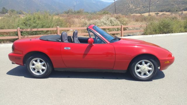 Please read entire listing! Take a look at this 1 owner California roadster! This one is so much fun to drive!This early production 7/1989 Miata is powered by the peppy 1.6 liter 4 cylinder and backed by a 5 speed manual transmission.It starts right up and runs great! The clutch feels nice and it shifts smooth.It goes down the road straight.It has power steering and power disc brakes.The timing belt was done recently (4/2018) and it also has a new battery,spark plugs,wires,radiator and hoses also.The Sumitomo radial tires have excellent tread and are mounted on the factory aluminum wheels.All the lights and wipers work properly.The interior looks good for being 28 years old.It is equipped with factory equipment package "A". The leather wrapped steering wheel and dashboard are nice.The carpet is clean and cloth bucket seats are showing wear from age.No smoke or pet odors.The top is in very good shape and also a brand new Robbins back window is included.The original spare tire with vinyl cover and jack assembly is included.Plus a Haynes repair manual and car cover also.The original Classic Red paint is shiny and looks good for its age.The body is straight and RUSTFREE! All the glass is clean and damage free. ***Vehicle sold "AS-IS,WHERE-IS", no warranty given or implied.Please remember this is a 28 year old used vehicle! Clean CA Title.We require a $250 (non-refundable) PayPal deposit within 24 hours of auction ending, and vehicle must be paid in full within 7 days. Western Classics LLC isa licensed and bonded California used vehicle dealer. ***Please read the following regardingtaxes and fees: - Out of state/ Out of country buyersare not charged sales tax as long as vehicle is transported out of California by a licensed carrier. You will pay the final selling price of the vehicle plus the documentation fee.The customer is responsible for registering and any other applicable taxes/fees for the vehicle in their home state or country. Our dealer documentation fee is $149.00. I will immediately send out my required documents for you to sign, once I receive my documents back I will release the title and send it to you via USPS priority mail. **California bidders will be charged sales tax,doc fee,smog fee and DMV fees. WE WILL ALWAYS ENTERTAIN A REASONABLE OFFER AND END THE AUCTION EARLY! - Buyers with less than 7 feedbacks,must contact me or your bid will be removed.We reserve the right to end the auction early. ***Any questions or concerns? My name is John,please give me a call702-683-6862pacific time. If you need a shipping quote, I can recommend Ron @ RevCarGo ph# 909-680-6213. It is currently warehoused in Banning,CA 92220 and can remain there until shipping is arranged.Vehicle must be picked up within 14 days after auction ends or storage fees will be added at $10 per day. |