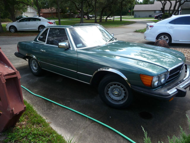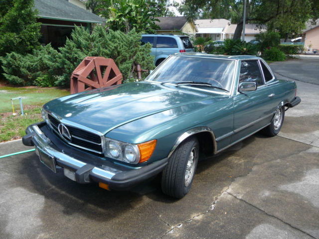 ;THIS BEAUTIFUL EMERALD GREEN 380SL IS BEING SOLD BECAUSE OF OWNERS HEALTH ! THIS CLASSIC HAS BOTH HARD AND SOFT TOPS. RECENT REPAIRS ARE NEW TIRES, EW BRAKES, EW AC, EW FUEL PUMP, ND PAINT JOB. NEW INTERIOR SEATS, HAVE ALL THE RECEIPTS. NEVER BEEN IN ANY ACCIDENT ! N.A.D.A. PRICE GUIDE HAS LOW RETAIL $13,500 AND AVERAGE RETAIL-$20,700 ! FOR A CAR THAT IS 32 YEARS OLD IT IS FAR BETTER THAN AVERAGE ! I MUST SELL; BECAUSE I CAN NOT GET IN IT IF EITHER TOP IS UP! ( HUGE HIP PROBLEM ) EMAIL OR CALL FRANK @386-676-9322------------- NOTE CAR IS A 350 SL !!!!!!! 580 IS TYPO ERROR !!!!!!!!>