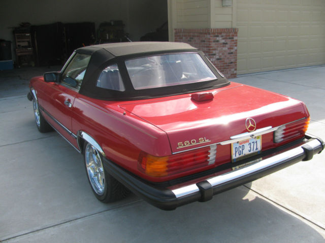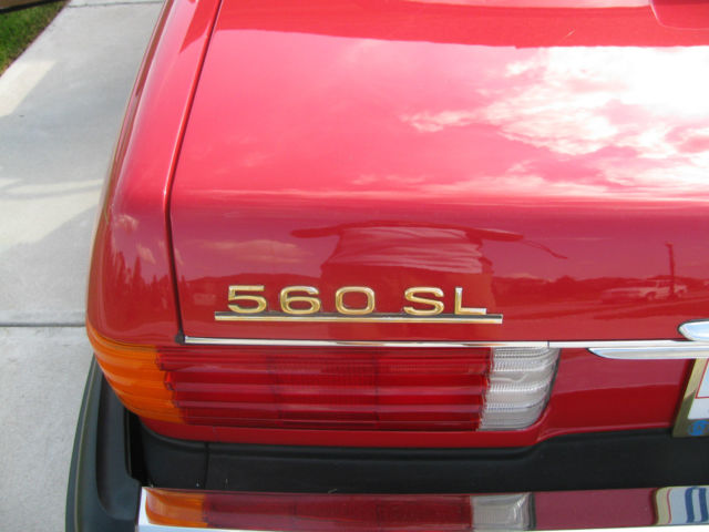 1986, 60SL, door coupe with less then 87,000 miles. A/C, ruise Control, eat belts, eather Interior, ower Steering, ower windows, ower Brakes, M/FM Radio w/CD Player, New Soft Top, ard Top, nd Tonneau Cover and removable back seat A picture perfect, 1986 Mercedes Benz 560SL 2-door convertible, 5.6, -8 engine with less than 87,000 actual miles on the clock. To compliment all of the mechanical attributes and to make your ride more enjoyable, his car features power steering, ower brakes, ower windows, tops, ir conditioning, M/FM radio with a CD player, utomatic transmission. This car has been meticulously cared for by its owner and has spent most of it's life in garage. The body is free of any rust and all panels and gaps are nice and straight. All chrome, tainless steel and moldings look wonderful too. The seats, oor panels, ash and carpeting are all in great shape. Further adding to this car's desirability. The jack and spare are present as well. If you are looking for a nice car that will prove to be a time-tested investment, here are few better places to invest your money than a 560SL. You just do not see many 26-year-old cars that have low miles and in great shape. You won't see many opportunities to buy a 560SL like this one.
