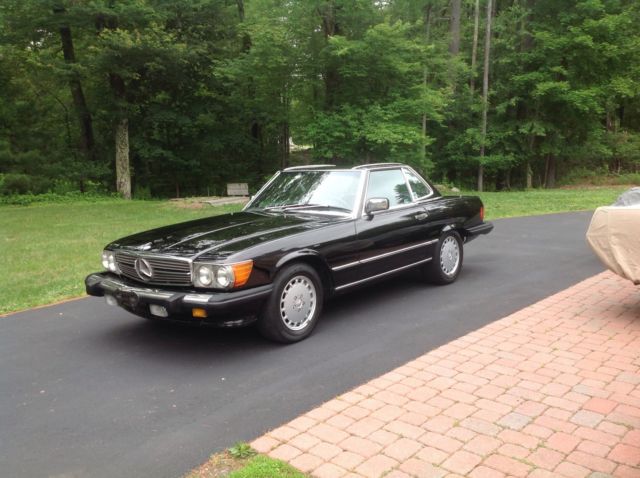 | This 1988 Mercedes Benz 560 SL Roadster in Triple Black hard top and soft top. Soft top is new, ar is in very good original condition. This was also maintained by the Mercedes dealer. Full power options with A/C, nterior is in very good condition..just one crack on dash. 108,200 miles. Exterior has one scratch on trunk lid..looks like someone tried to take roof off alone. Original alloy wheels with continental 225 R 15 tires, arage kept and clean title, till has original first aid kit. Please call with any questions 508-265-2616 or whitey19@icloud.com |
