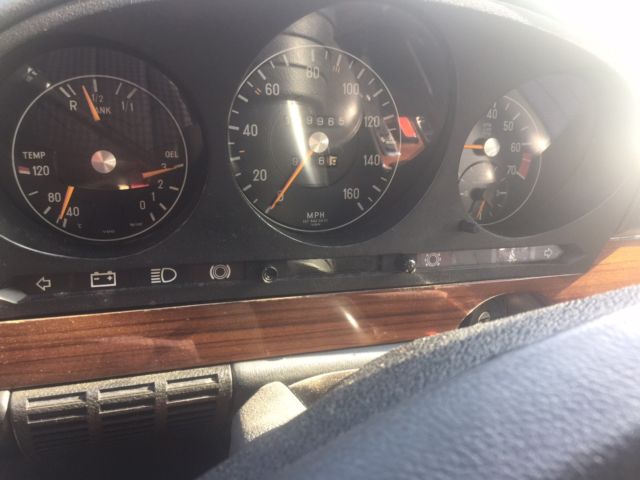 Car was repainted about 10 years ago with base/clear coat. Interior in great shape, nderside of car very clean and has been kept washed. Car has been in heated storage for over 15 years, nd has not been driven in winter months at all during that time. Has new tires, rakes, nd has been serviced by a Mercedes dealer. Starts and runs great. AC work several years ago when charged but has not been used in several years. All power windows,sunroof and power radioantenna works well. 4 wheelindependent suspension, ides great. Car belonged to my father who can no longer drive it.