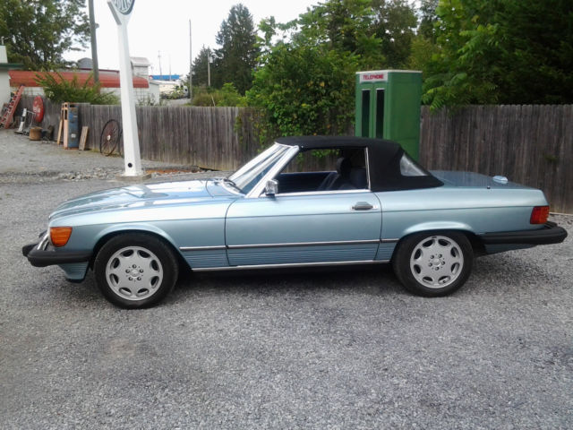 | 1989 Mercedes Benz 560SLNew Clearwater Blue Paint: Completely taken apart and painted by piece.New Mercedes Benz Leather InteriorWheels are new - tires not new but in good conditionNew Cloth Top InstalledNew Mercedes wood and dash coverEngine, rive train all chromeMercedes factory RadioRuns and Drives Very nice can drive any wherePut yourself or Lady in this to enjoy! |