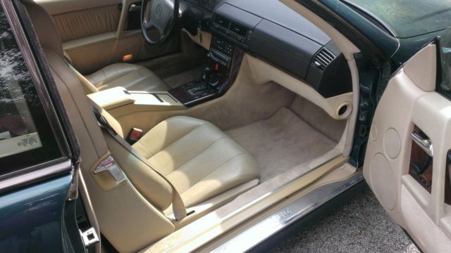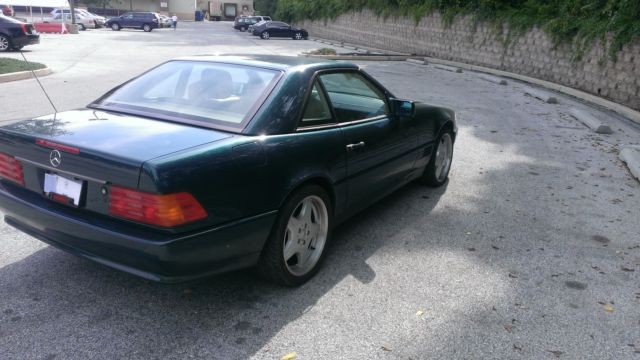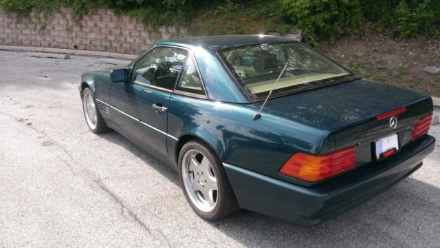 This is a 1994 Mercedes SL320Straight 6, onvertible with hard topEmerald Green with tan leather interior with some noticeable wearAMG Alloy wheels, ow profile tiresHID upgraded headlights Alpine radio with DVD and MP3 Player6 disc CD changer in trunk which also plays MP3sDVD screens in both headrestsThe radio screen allows the option for a read back-up camera "Silent talker" which scrolls messages underneath the rear license plate can be turned on or off at will. If any questions call or text me at 215.715.0878 (Nate)... |