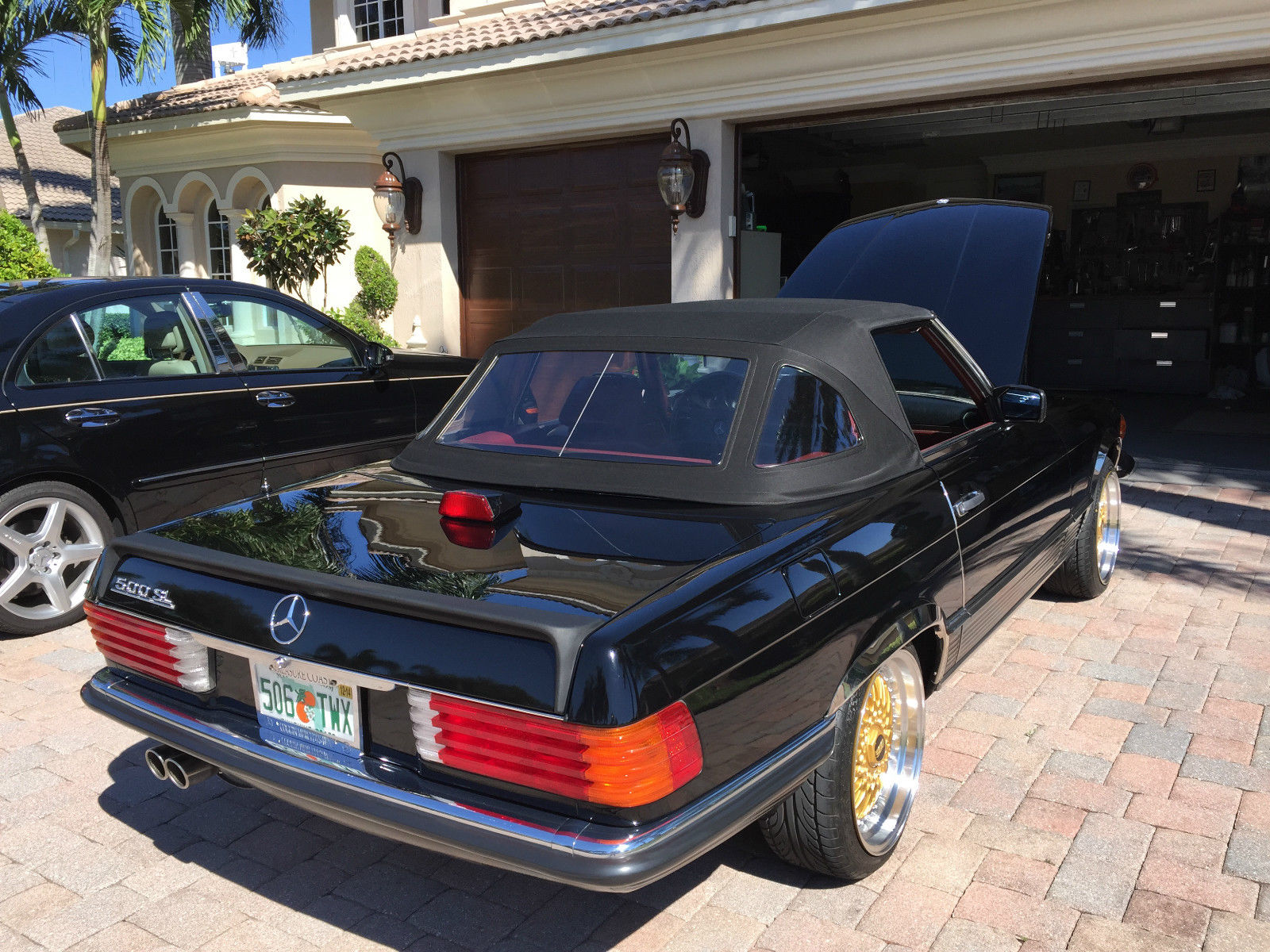 | . 1986. EUROPEAN VERSION . HIS AUTO IS IN EXCELLENT CONDITION Impressive 1986 Mercedes Benz 500SL This impressive 1986 Mercedes Benz 500SL 2 Door Roadster with Black factory paint and a cranberry leather interior. It is equipped with a 5. 0 V-8 engine and an automatic transmission. plus this classic roadster has power steering. power 4 wheel disk brakes. ew BBS wheels and tires. omes two tops . 1convertible;and a removable hard top. nd also a premium Pioneer sound system. This Mercedes is in excellent mechanical condition. as well and it’s ready for cruising. ery hard to find European version. 7. 00 miles This Mercedes was imported from Europe the vin number is as follows WDB1070461A035550 |