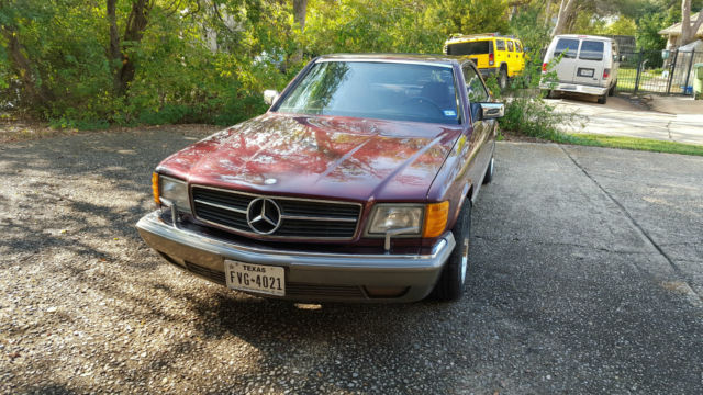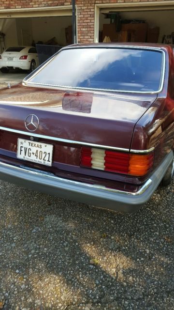 I drove the car about 30 miles today with no problems; car started up right away and drove well considering she needs an exhaust manifold boot for a smoother idle.All lights in and out work as they should, urn signals, oor locks, ower widows and seats all work perfect. Leather in great shape as well as dash with no cracks. AC and Heat all work great.Power windows ( all 4), ower door locks and retractable seat belt holders all work. All gauges work except the clock; new outside temp installed recently.All outside light, ail lights, nterior lights and warning lights all work as they should. The cruise control needs to be looked at.The sunroof motor needs replacing; my mechanic replaced the switch and greased the cables and connections.Brand new Mercedes 560 SEC Floor mats front and rear.No rust or leaks.I have in the trunk a refreshed am/fm Becker Grand Prix radio to replace the Craig aftermarket one now present; a new power antenna would be in order too.New tires with original spare and proper tools.There are two paint spots on the roof driver side in front of the sunroof and a spot on the passenger side of the hood that the clear coat has come off. Not bad and I had a quote for the paint work at $200. All original paint.She passed TX state inspection and is registered and insured to drive. Shipping is the buyers responsibility. NO RESERVE AUCTION, oes to the highest bidder. Car is listed for sale locally and I reserve the right to cancel the auction.You can contact me for questions through EBay or call me at 214-724-9350 and ask for John