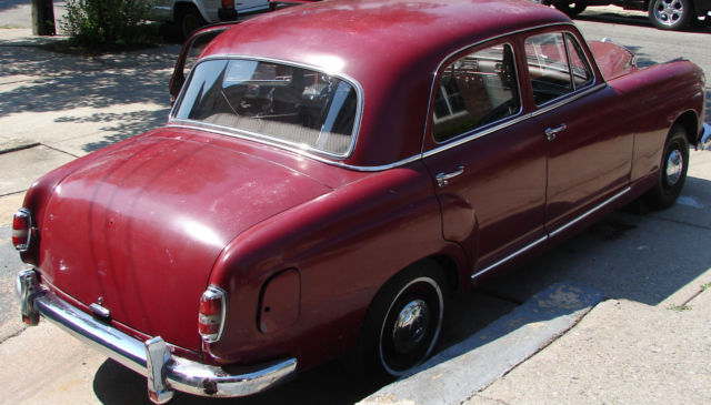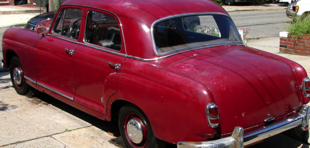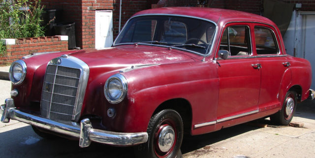 Preservation Motors Vehicle was found sitting in an actual barn for over 12 years until 2012. (Engine still turns on with no effort). Year:1959:Make: Mercedes BenzModel: Ponton W105: 219 Lim Type: Sedan:Paint Color: Burgundy (Needs respray - The Current paint on some of the areas were obviously a novice respray from one of the previous owners - Mostly the Front driver side fender) Transmission: Hydrak Semi-Automatic (limited three year production) (shifter on Steering Column)Fuel: Gas:Motor:6 cylinder 2195cc/100hp:Factory Build Date: Oct. 23rd, 958Odometer: 88,610 Vehicle Condition: (Please see pics for further conditions- we tried our best to show and identify as much as possibleHopefully the pictures with give enough detail for everyone to have a true idea as to the condition of the vehicle.The photos shown are specifically focused on showing the areas that need attention, long with the wonderful condition of the other areas)