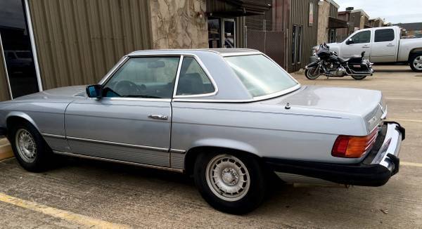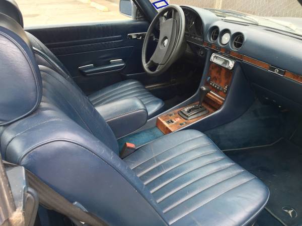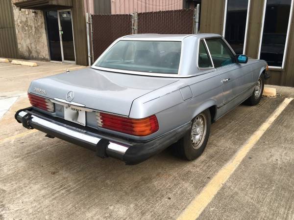 Silver Blue Metallic 1984 Mercedes 380 SL Roadster Convertible with Original paint. • SUPER RARE !!!!! • Black soft top and dark blue detached hardtop. • Hardtop storage stand and cover are included. • Engine rebuilt abou two year ago. • Has lots of power and runs great. • Stainless steel Exhaust system is about two year old. • Blue leather seats in good condition excepting one small tear on driver's seat. • Body has original paint some small chips, ut looks good. • Single CD player w/ FM/AM radio and custom speakers in rear. • Original tool kit • Original First Aid kit. • Five Classic original wheels, ncluding spare tire wheel. • Mileage shows as 186,000, ut actual mileage is not known. • Brand New Battery • New Spark plugs • Fresh Oil Change done This is a great sports car convertible that is really fun to drive and turns heads. It is roomy enough that it doesn't cramp you in a small cockpit. Just coming into its own as a true classic that should increase in value over the years. Please text or call me 2 EIGHT18 FIVE0 0 eight1 one with any questions. Car is located in Houston Tx DONT NEED HELP SELLING THE CAR..... CASH ONLY..... BUYERS ONLY..THANKS!!! NO RESERVE AUCTION...... BUYER RESPONSIBLE FOR SHIPPING CHARGES |