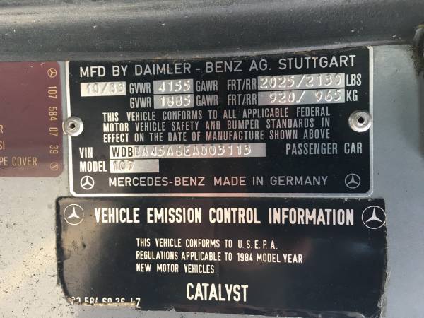 Description of 1984 Mercedes-Benz SL-Class ROADSTER CONVERTIBLE |