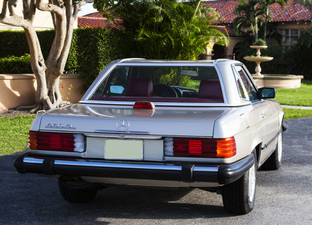 560 1987 560SL Smoke Silver Metallic with Burgundy leather Perfect! Beautiful! Here for sale is one of the most sought after of the modern SL's around. The legendary 560SL. Built only in the last years of the R107 SL's 18 year build run. Truly the best of them all. Prices skyrocketed last year almost 79% in only 4 months from January to May according to the Hagerty valuation index. Collectors have finally realized the iconic, lassic style of these cars and their incredible build quality that made them stand the test of time. This model, Texas car, ree of rust that plaques northern cars, s finished in Smoke Silver Metallic with Burgundy leather. A popular and unique color combo at the time, and way more rare and interesting today. The car was repainted a few years ago only due to the clear-coat fading in spots. There was no rust nor did it ever have any rust. It was simply cosmetic choice. The leather seats are supple and soft and not dry rotted or brittle. The wood still maintains a deep luster and in general the car is good shape. The cars soft top is old and brittle and in need of replacement. Original material tops can be purchased for around $400 in the color in which one desires. The car runs fast and strong, he transmission is tight, nd the air is cold. Being that this car is nearly 30 years old, n my opinion it has held up extremely well. Car is located in West Palm Beach, L and can be seen upon appointment. Please call (561) 801-2668 with serious inquiries only. Thank you! | |