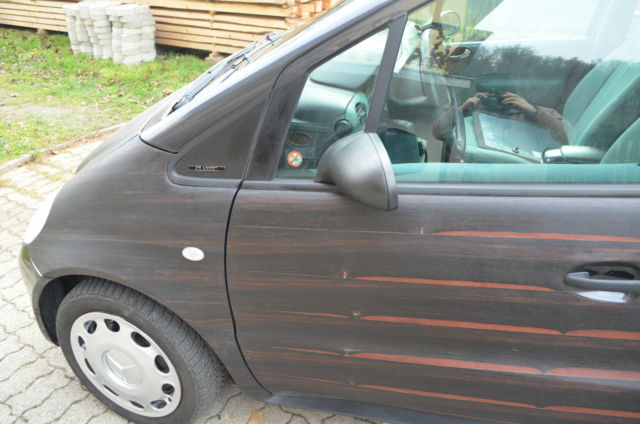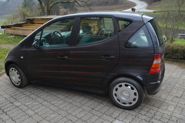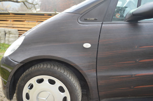 | it is mercedez benz a-cllas car. coating with wood furnier makasar (roof und bumper not) and impregnaited with wood oil. is not for a daily use |