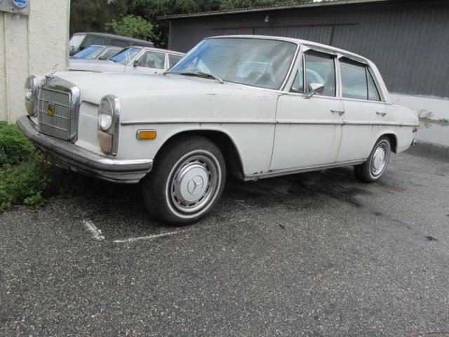For Sale is a 1971 Mercedes-Benz 220D. This unusual car is finished in 717 Papyrus white with a green MB tex vinyl interior. It is equipped with a floor shift 4 speed automatic, ir conditioning, ecker California AM radio and the wonderful OM615 diesel engine. We have all of the original purchase documents with the vehicle, nd it is a genuine 2 owner car. It was sold new at L.P. Evans Mercedes-Benz in Miami to Mrs. Carrie Patterson Smith of Melbourne. I first came across this car in 2005 when her son sold it one of our customers. The pictures tell all- we have all of the manuals, he tool kit and the documents related to her registration and insurance over the years. The current condition of this car is reflective of how long it has sat- roughly 4 years. When it was acquired in 2005, t had sat some more, ut fluid services were performed and items like tires and brake hoses were replaced, nd it was used again until about 2009. The second owner did not do this car justice, nd when he tired of it, e parked it. We recently rescued it from him and got it running again. Here are the car's strengths: -Excellent green interior and dash. Carpets are deteriorating, ut are still usable. - Excellent transmission and rear axle. Transmission was completely resealed in 2007. - Good key structural points on body, uch as firewall, hannels in unibody and frontal area. -Doors are mostly free of rust, s are C-pillars and rear quarters -Healthy compression [310-305-310-315]- valves not adjusted. -Engine does run, as good temperatures, ood oil pressure, tc. -AC system was functioning new hoses and expansion valve were replaced in 2006. -Maintenance was kept up until 2006. Here are the cars weaknesses: -Rust repair needed to floor pans, runk floor, ront fender bottoms and a little bit on the rockers. All of these items are repairable and do not require great expense. -Injection pump does not deliver fuel on number three delivery valve, aking starting and idling difficult. Injection pump will need to be rebuilt, nd we can assist the buyer in this process for a separate fee. -Paint is in poor condition. While this car is not currently a roadworthy car, t is a very good project car. We DO NOT encourage you to bid if you are going to use the car for parts, r if you are uncertain of whether or not you can handle this kind of work. This car should go to a good home where it will be rehabilitated and enjoyed by someone who is passionate about older Mercedes diesels. Please look at our extensive photos, nd enjoy bidding on this lovable little 220D!