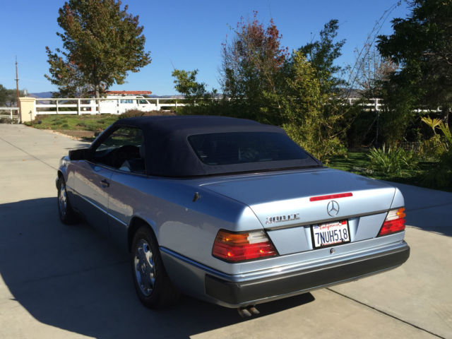 If you want to join the ranks of collector car enthusiasts, ou owe it to yourself to own one of these Mercedes 300CE/E320 cabriolets. What makes them so special is the fact that that they are one of the last hand built Mercedes. Believe it or not, ou can use them both as part of your collection or as an everyday vehicle. That’s how reliable they have proven themselves to be and how well engineered and well-built they are. They don’t drive like a 20 year old car, ore like a contemporary Mercedes. Not many 20+ year old cars are worthy of these claims. I own 6 124 coupes and cabriolets and the Ice Blue Cabriolet pictured here is a standout automobile with only 79,000 miles. I am a perfectionist and I insist on total mechanical reliability. That is why I replace the wiring harness and head gasket on every 124 I own. All the lights, ll the gauges, ll the power window and seat switches work perfectly. The air conditioning and heater work as they should. In addition, ew brakes pads and rotors with painted calipers were completed recently. Cosmetically, he car is in far better condition than most 20+ year old convertibles. The navy blue top is in great condition and features correctly working hydraulics. I have 2 other equally nice 1995 E320 Cabriolets for sale. I reluctantly am selling three of my cars as I have lost the storage space for my collection. I invite you to inspect this Mercedes 300CE Cabriolet or either of the other two E320 Cabriolets. They are fast becoming contemporary classics. Please call with ANY questions: Robbie @ 805-471-17022 |