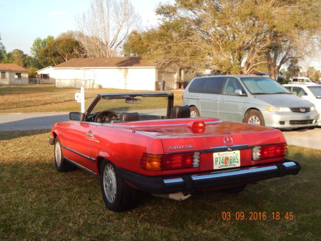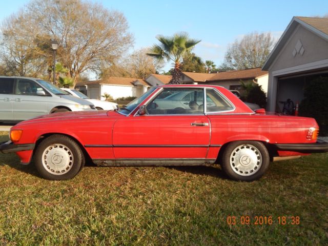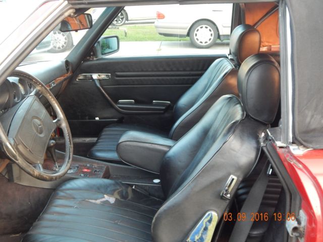 1987 Mercedes Benz 560 sl roadster,this car i call it for restoration,needs paint,and fix some of the floor panels due to some rust,windshield is craked,the exhaust is not original,the soft top is good,plastic windows need cleaning.the good,car is complete no smoke,shift good,drive anywhere,just and inexpensive way to drive and r107i start at 3000.00 no reserve.please look at the photos,thanks.ps the auto check put this car in new york in and a minor accident,but the date of the accident ikow the car was in florida,wrong info,actual mileage is the one stated on listing thanks.