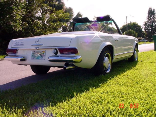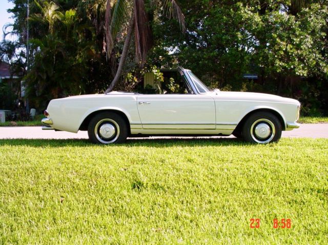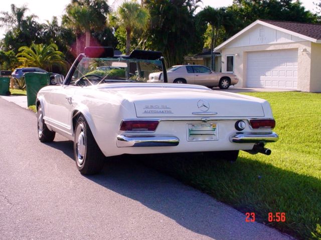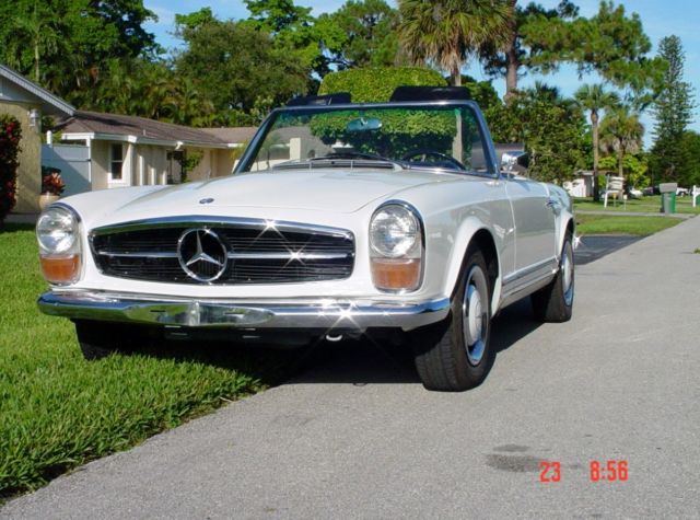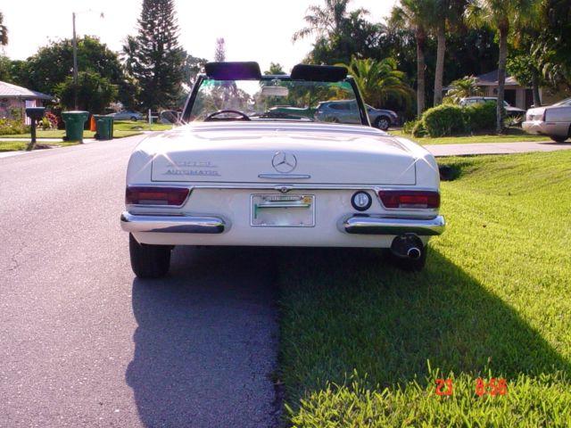 Beautifull 1966 - 230SL Strong engine matted to a very smooth automatic transmission. New parts; high quality Soft top, SITGLA windshield,OEM windshield gasket, ft KYB shocks, door gaskets, weather strips, soft top cover weatherstrip (horseshoe), trunk gasket,gas neck filler groumet,etc,etc. The Tachometer cable quit working yesterday afternoon. Already order a replacement. All the gauges and lights are working. Radio and electric antenna are not powered, (maybe a fuse), I haven't checked. Solid trunk floor,(both sides). Hard top is in very good condition and so does the Headliner. Nice an original interior. Car is loaded w. 3rd jump seat. Good tires, excellent brakes, suspension, ft & rear end, etc, etc. Very nice Hub cups and beauty rims. A very nice Driver. More than a nice one.. Yesterday I drove the car 120 miles on the Highway and a couple of hours in downtown. There was absolutely no overheating not a weird noise, nothing but the pleasure of driving under the Florida sun. If you have any questions please call. Thanks, William(239) 601-5204 N.: Odometer/Mileage, I can guarantee nor willing to the mileage or the Odometer reading. OK???On Jul-26-16 at 10:49:08 PDT, seller added the following information: Should said/state,...I can't guarantee the exact mileage on the car....Cloc, Radio and electric antenna are not powered/functional. On Jul-27-16 at 14:06:33 PDT, seller added the following information:Spare tire and cover is included. I removed it in order to take pictures.Also the owner's manual. |