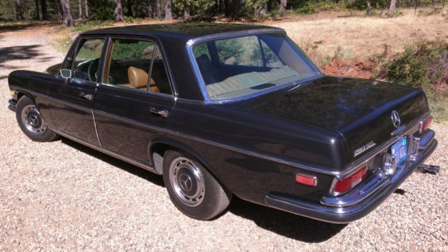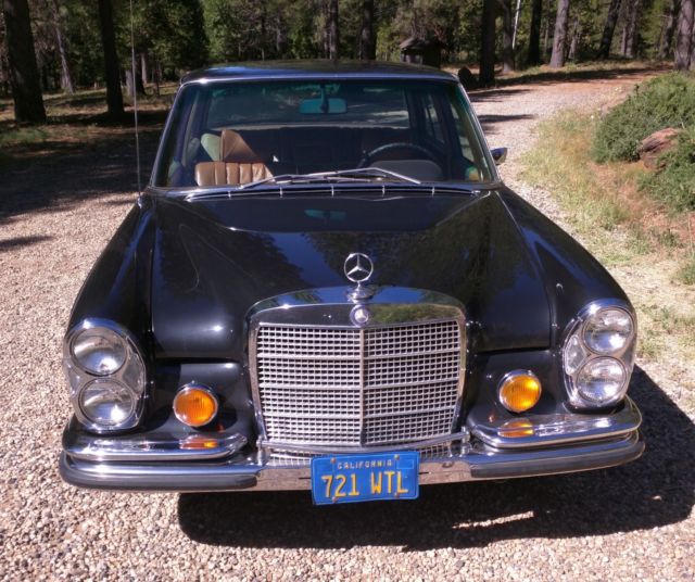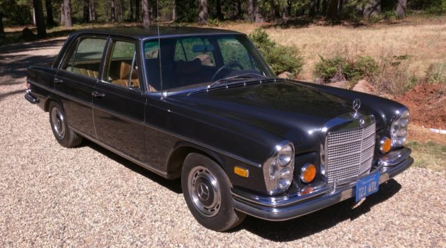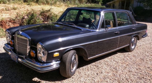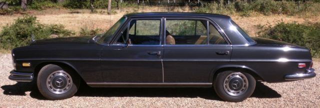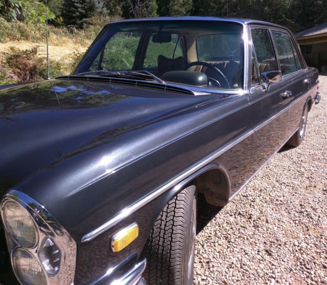 This car is amazingly rust free and generally quite presentable! It’s been a California car for almost its entire existence, other than the original owner taking European delivery. I have the service records that go back to when it was new, including the original service book and a file with the repair and maintenance receipts. It is a two owner, one family car I believe, other than myself and I just took ownership fairly recently. I bought it from a friend whose wife passed away and it was her car. My friend is wealthy and did not want to deal with selling the car, so I bought it for a project for my son and I to tinker with as it is such a nice example. Being wealthy he was able to maintain the car properly, but his wife had macular degeneration so the car had not been on the road for about eight years. Unfortunately my radiation and chemo treatments have left me unable to pursue the project any further. The car starts right up, does not smoke, has good compression and oil pressure without any weird or nasty noises. The transmission is quiet and shifts fairly smoothly. These cars had hydraulic clutches and were not not known for shift smoothness, but if you drive it “normally” (not hot rodding it) it shifts great. That said, I have not driven it more than a mile or two at a time, again due to my health. I had it trailered to my house, then drained the gas, oil and coolant and replaced them all. Full synthetic Mobil 1 oil, new filters, etc, of course. The paint is nice and shiny as is the chrome. There are small dents in both. I believe the body issues could be fixed with the “paintless dent repair” technique, but I have not had anybody look it. The few dents are barely noticeable. See the photos. 3 of the 4 hub caps (wheel covers) are nearly perfect while one has a small dent. See photos. The chrome has a few issues, but is rust and pit free and looks nice for the most part. This is a partial list of work performed on the 1970 280SEL Mercedes in the last 50,000 miles or so, but does not include normal maintenance like oil and filter changes, belts, tune ups etc. In more or less chronological order starting with the oldest first. New brake master cylinder. New front brakes, including calipers. New rear brake pads. Flush brake fluid and replace. New water pump. New shocks. New exhaust: resonator, pipes, muffler, exhaust tips, all in stainless steel. New rear bumper, taillights. New tie rod ends, steering damper. New motor and transmission mounts. Electronic points. New oil cooler hoses. New neutral switch and shift indicator. New voltage regulator and alternator brush holder. New rear brake hoses. New front brake pads. Replace wiper motor (used unit). New vacuum advance. New RF window regulator and switch. New front brake rotors and pads, seals. New brake reservoir. New water pump. New driver’s side carpet. Tires still have lots of tread and are wearing evenly. In addition the car has had the cylinder head replaced, new upholstery, and a total repaint from metallic green to metallic charcoal. The car was stripped back to bare metal, the jambs, under the hood, etc have all been painted charcoal. The car needs somebody to tinker with it. The things that need attention, as far as I can tell, are the heater controls need to be replaced, the AC system need attention, the fuel gauge doesn’t work, the radio doesn’t work, but the power antenna does. It could be bad speakers? The power windows all work, but a couple are slow, so they could use some lube. There are a couple of minor oil leaks, just a few drops after sitting for a week or more. Also the car seems to lean out as it warms up, so that needs attention as well. It sat for years, so it probably just needs to have cleaner run thru the system, but I have not been able to troubleshoot it myself. I will try and answer any questions you may have, but my time with actually driving the car is very brief. The car has no warranty, expressed or implied. That said, I think it’s a good example for the most part and would be a joy to own. More photos at PHOTOS including a video of the car starting and running.