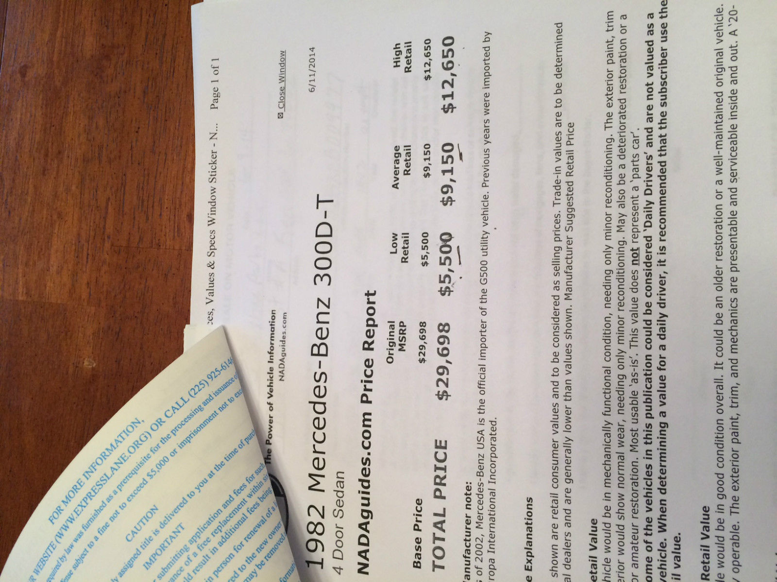 Description of 1982 Mercedes-Benz 300-Series 300T-D |