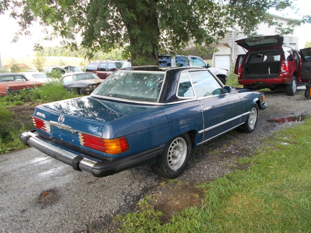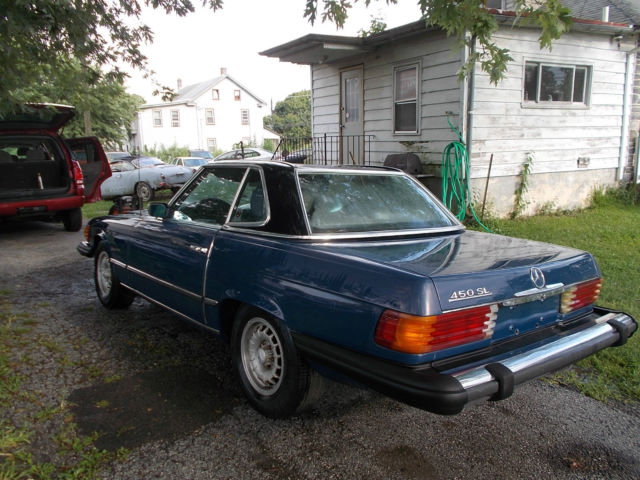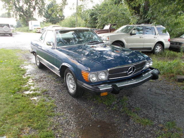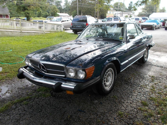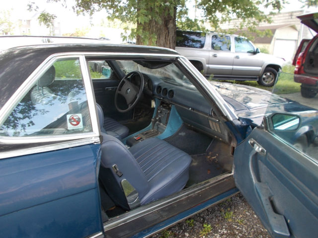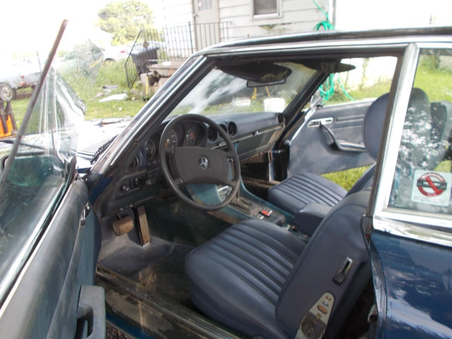 1974 Mercedes 450 SL convertible, V8 automatic, runs and drives, has low miles 80,467. but has been sitting so it should be gone over before driving it any distance. The car has some rust. There is rust on the front fenders, and there is some floor and rocker rust The frame is in good shape. It does have both tops, but the convertible top is in bad shape. The hood has damage from a chunk of snow off of a roof The paint is faded. the interior is fair, the radio is missing. there is no reserve so the top bidder owns it. There is a parts car that has good rust free fenders and a good hood for an extra $500.00 that is the buyer has the option of purchasing. If you do not have feedback please email me before bidding..