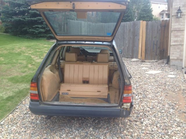 1987 Mercedes-Benz 300TD turbo diesel 6-cylinder wagon. Black exterior with Palomino leather interior and 189,000. Minor damage to rear passenger quarter panel from backing into a parked car. Third row seating (7-passenger), diesel 6-cylinder engine, 4-speed automatic transmission, new tires and much more. This rare turbo diesel was manufactured for only one year. In good condition, but it's certainly not a new car anymore and needs a little TLC. I bought this to try my hand at making biodiesel, but could never get any waste oil so the car became the kids car for school, but they are all grown now and we no longer need it.