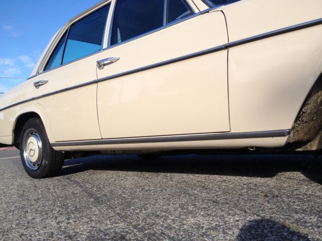 Offered for sale is an original good condition 1970 Mercedes-Benz 250 sedan. 91500 miles. Bought new from Mercedes-Benz of San Francisco. Clean title, original California Blue plates, has never left SF bay area. Three owners since new, first owner sold it in the late 90s. Service records since day one. Original paint still shines near new, interior all in great shape. No rust anywhere. A/C working and blows cold. No fluid leaks noted. Wheel covers are in great shape with no damage. All glass is in perfect shape with no cracks or delamination including the windshield. All chrome parts are in good shape and are free from any rust or pitting.Car has recent filter, fluid services, valve adjustment, and new front brake calipers. The cylinder head has been rebuilt during the life of the car. Has weber factory dual carburetor upgrade (these were installed new about 6 years ago). Runs and drives well, can be daily driven reliably. There are some minor chips, dings and scratches on the car. See pictures. The dash has one crack, the front door panel storage pockets are missing on both of the door panels. The tires that are installed on the car now are two sizes too small. (I have no idea why this was done) Feel free to make a reasonable offer. If you need any more information, or pictures please call me at 408-823-2744. Vehicle being sold as is, I reserve the right to sell this vehicle outside of eBay.