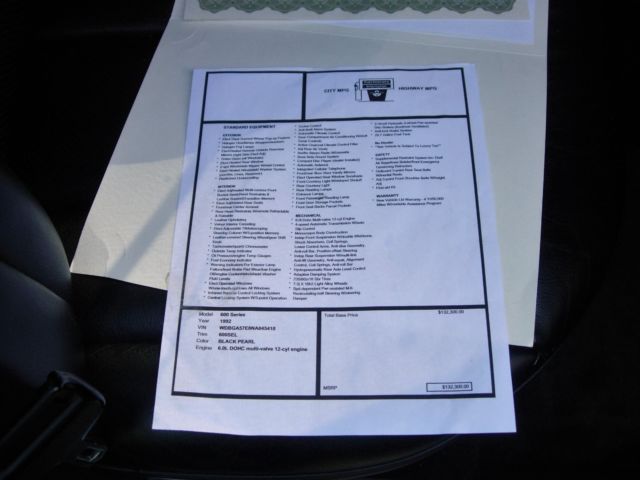 For collectors only, the desired color, Black Pearl with Black Palomino Soft Leather Interior, very rare, handmade built in Germany. The first by Mercedes Benz, their Flagship car,1992 MERCEDES 600SEL V12, it was the 1st body change for Mercedes from their 1991,V8 560SEL. This is a real classic first big body 140 Series Mercedes, there is not another one like this one anywhere, updated Mercedes Features like the AMG Models. I am thethird owner, I have owned this vehicle close to almost 20 years, no expense spared to keep up this car, still love it to this day, a daily driver for me, when am driving it, I feel like am driving a newer car, not a car over twenty years old. I have no reason to sale it, except my wife says I need to get a newer Mercedes S Class. I spent over $18,000.00 in up keep over the years, that's why it still runs so good. Listed below are parts that have been replaced on this car;Two Throttle Body actuators, New Spark plug wires, New Alternator, New Fan belt, Two new distributors, Two rotors, 12 ($0.99 each) new bosch spark plugs, Two cam shaft sensors, Water Pump, New Radiator, Four Bilstein Shocks, AMG Chrome Wheels, New Rebuilt Transmission,New battery,Always Garaged since ownership. Any questions email,robind00@netzero.com