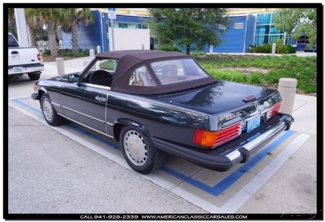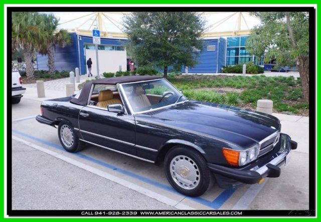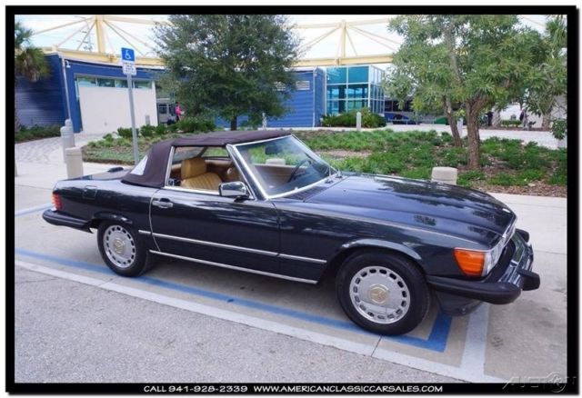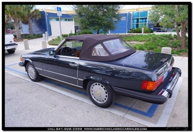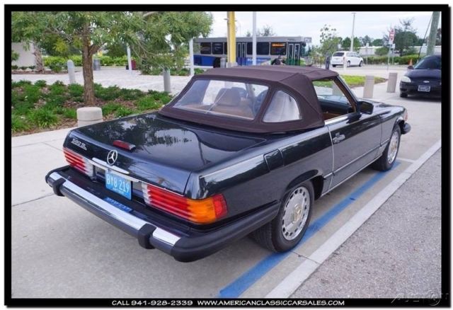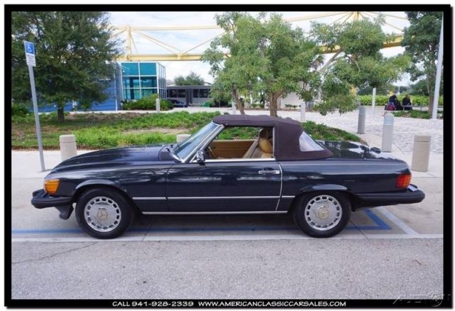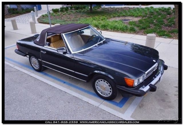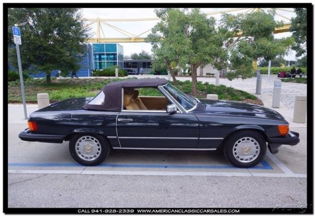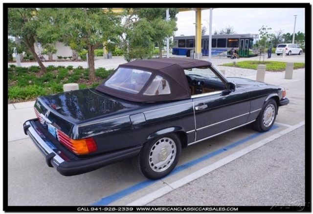 Dark, dark, dark metallic green enhances the beauty of the unparalleled 86 Mercedes SL convertible. A black bonnett protects the tan calf leather seats and immaculate interior. Always the ultimate at any function, makes your friends and neighbors know you appreciate the finer things in life. The joy of driving a Mercedes says it all. All maintenance records intact. To obtain more information on this particular vehicle, call, email or stop by, and one of our sales associates will be happy to assist you. Questions or a short video, no problem! We take trades and can help arrange financing and shipping. You can buy with confidence, as we are one the industries leading 5 Star classic car dealers. Our founding principles remain the same today as they did in the beginning, Honesty and Integrity. We believe we can make your classic car purchase an enjoyable experience. Our sales and office staff with handle all of the details as you sit back and await the arrival of your legendary motorcar. Thank you for viewing and if we can be of any assistance please call 941-928-2339. See our entire inventory at www.americanclassiccarsales.com. American Classic Car Sales 1683 Cattlemen Road Sarasota, FL 34232 941-928-2339 Showroom hours: Monday-Friday 9-6 Saturday 9-4 Sunday By Appointment Only