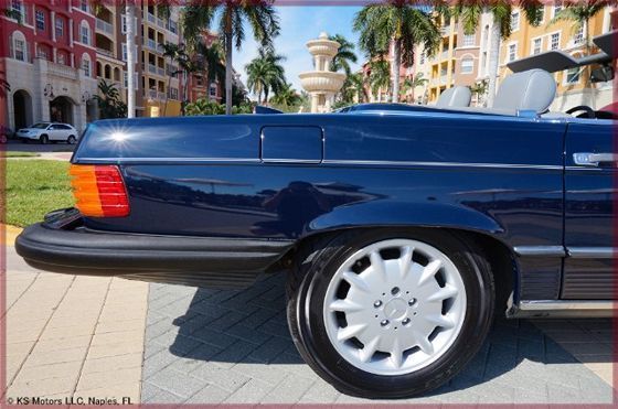 For sale is my gorgeous Mercedes-Benz 560SL with only 118,000 original miles! Always garaged West Coast Car. I am just the 2nd owner and bought it last October. This car is beautiful inside and out. This one is almost flawless. . The 560sl has a clean Carfax. It comes in one of its most elegant, sought after color combinations Midnight Blue exterior with Grey interior. It is truly a beautiful and super elegant car! The paint looks gorgeous and is deep rich and shiny. The car is very straight with no dings, dents or damage. Both tops are in excellent condition as you can see in the pictures. All wood parts are in good shape with only very minimal cracking. The wheels were just refinished and the tires are brand new. The Mercedes has no known mechanical issues at all! Everything except for the cruise control and alarm works as it should. The car was just serviced. changed all fluids, filters, exhaust pip, alternator, all belts. The a/c blows cold and the steering is tight. The 560sl drives and shifts very smooth like you would expect from a classic Mercedes-Benz. This is a very nice example of a 560sl. The car is ready for the road and it needs nothing but a new owner! I took a lot of pictures so you can judge for yourself. The car is currently drive, so the mileage at the date of sale might be slightly higher. The Pictures were taken last October in Florida. This is an Oregon car that was shipped to a Florida Dealer. I bought the car from him last year. I am using his pictures to show the beautiful midnight blue