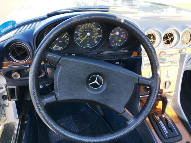 All gauges, lights, indicators, wipers, heater fan, dash instruments and even the cigarette lighter works. Radio does not work, but the power antenna does. Has A/C, but it needs to be recharged. Transmission, exhaust, brakes, and tires are all good. Fuel distributor and injectors were just replaced this year and the engine is starting and running well. Clean Title, no liens. This model SL was not sold in the US. Bought it from the original owner 10 years ago, so it is a 2 owner car. It was never driven in the Winter and the body is solid. No rust. Car was in an accident before I purchased it, but was fully restored. Car has MN plates, but has been in So. Calf last 15+ years. Some cracking on dash (see pic.) It has a new soft top,and it comes with the original hard top too. The paint on the hard top is good, but it will need a new headliner. Comes with original owner's manual in German. Car is garaged in the Palm Springs, CA area for local pick-up, or buyer can arrange for shipping. ebay listing would not accept i, but actual VIN is WDB1070421A020522. |